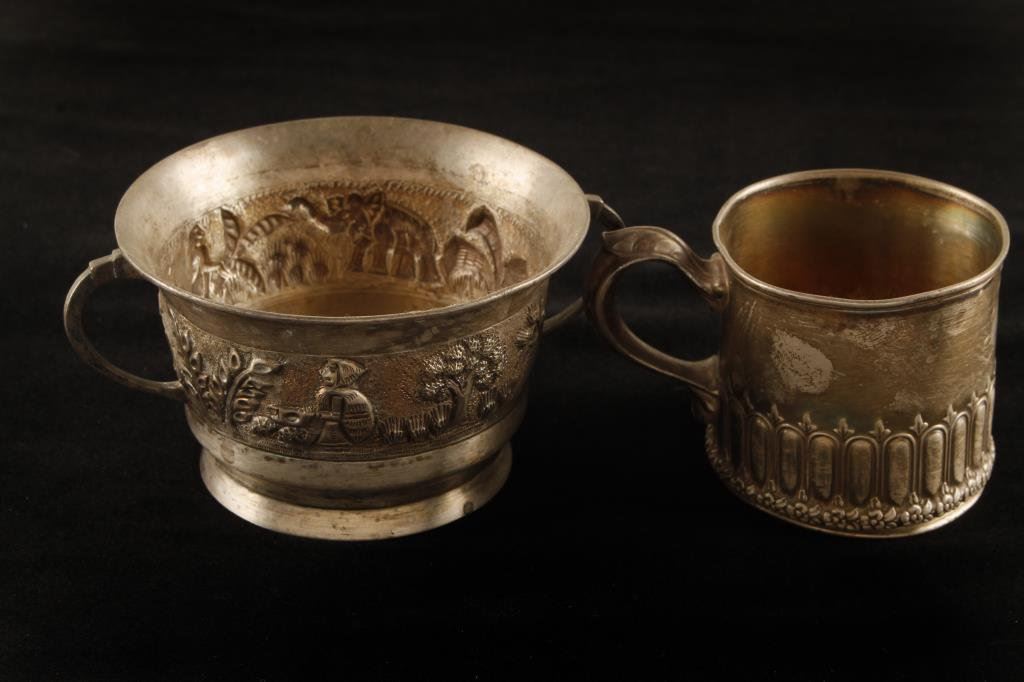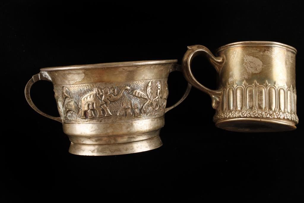 2-old Sterling Silver cups hallmarked weighing approx. 190 gms. approx. 6 ozs. Est.:$200-250