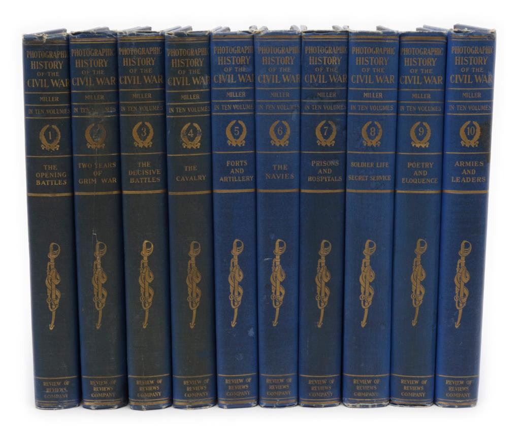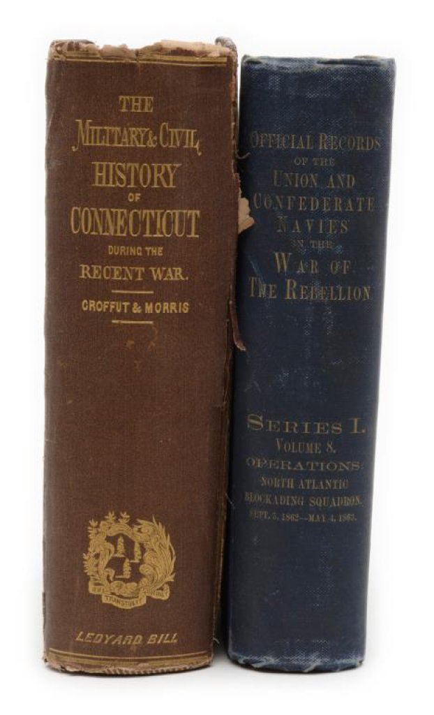 Book lot including a 10 volume set of hardbacks “Photographic History of the Civil War plus an 1868-dated hardback entitled “The Military & Civil History of Connecticut During the Recent War” by Croffut & Morris; also one volume (Series I, Volume 8) of the “Official Recordes of the Union and Confederate Navies in the War of the Rebellion”; hardback and dated 1899, printed by the Washington Government Printing Office. Great reference materials on the American Civil War. Est.: $200-$400.