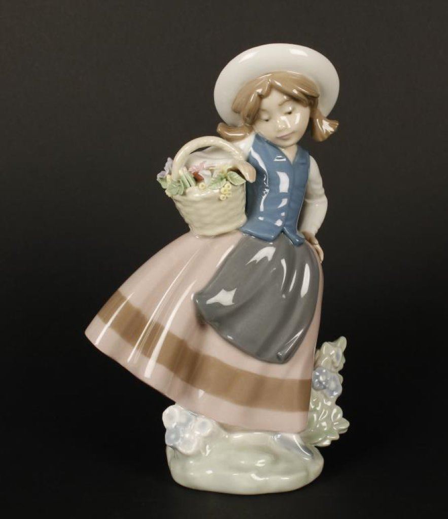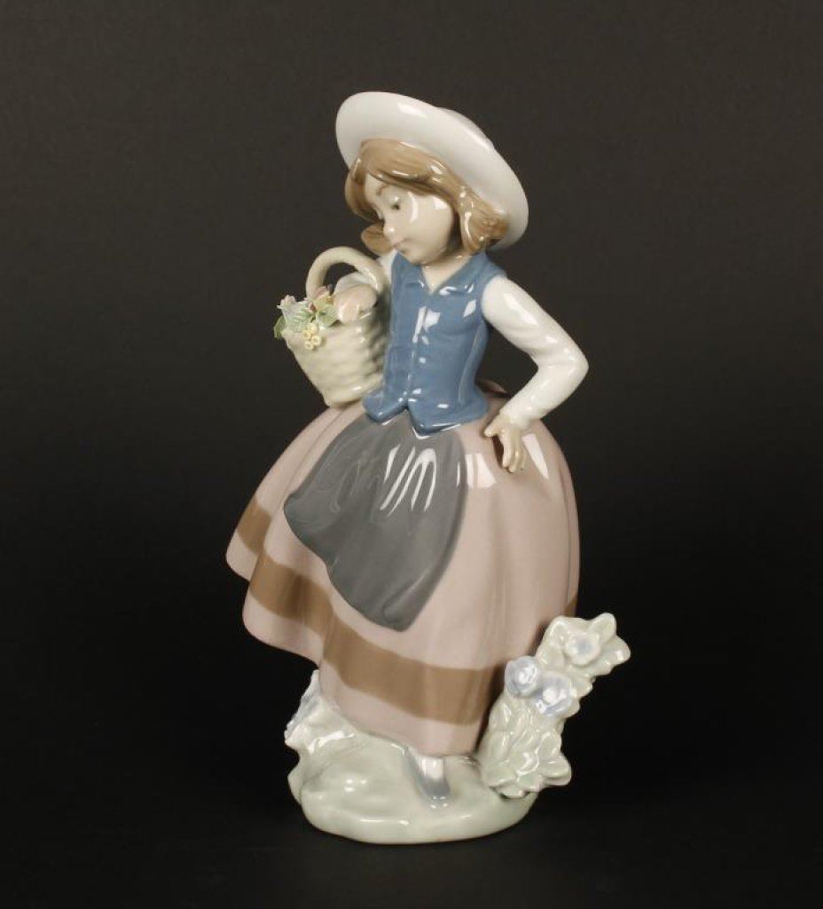 Lladro girl with flower basket, #5221; 7” in height. Est.: $75-$150.