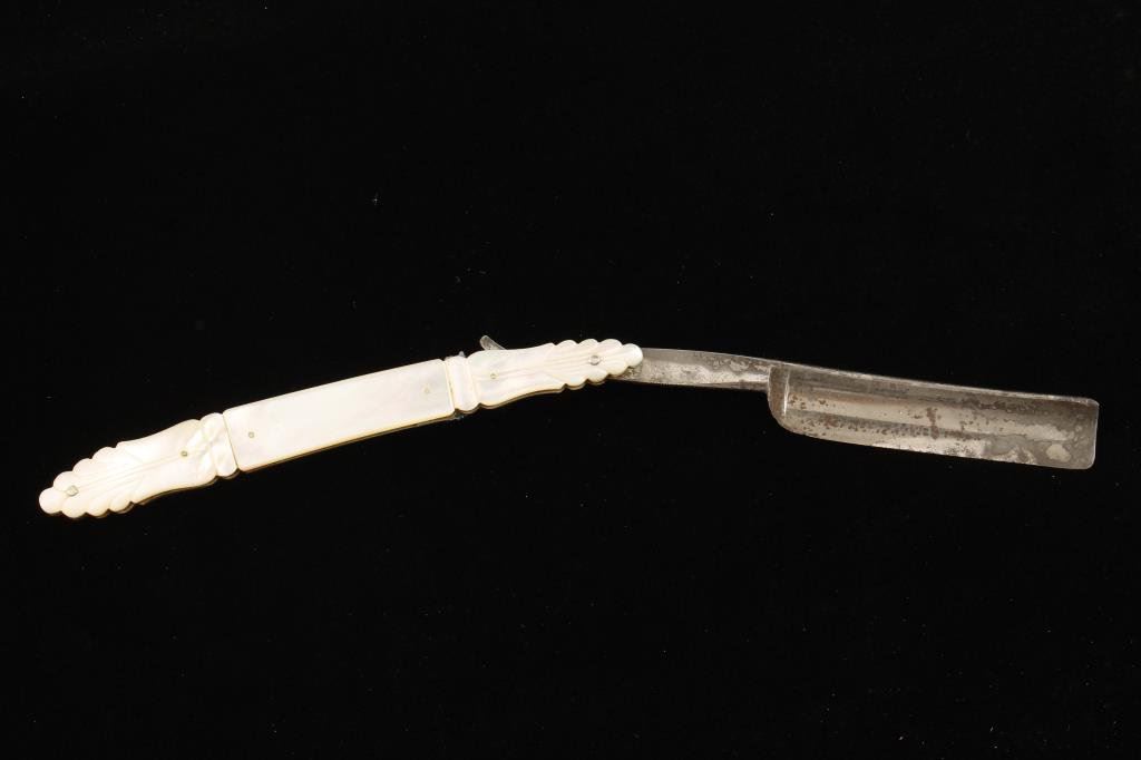 Antique pearl handled straight razor marked “J.A. HENCKELS./ TWIN WORKS/SOLINGEN/GERMANY” in overall very good to near fine condition. Est.: $125-$250.