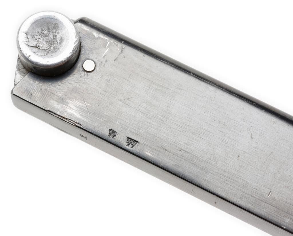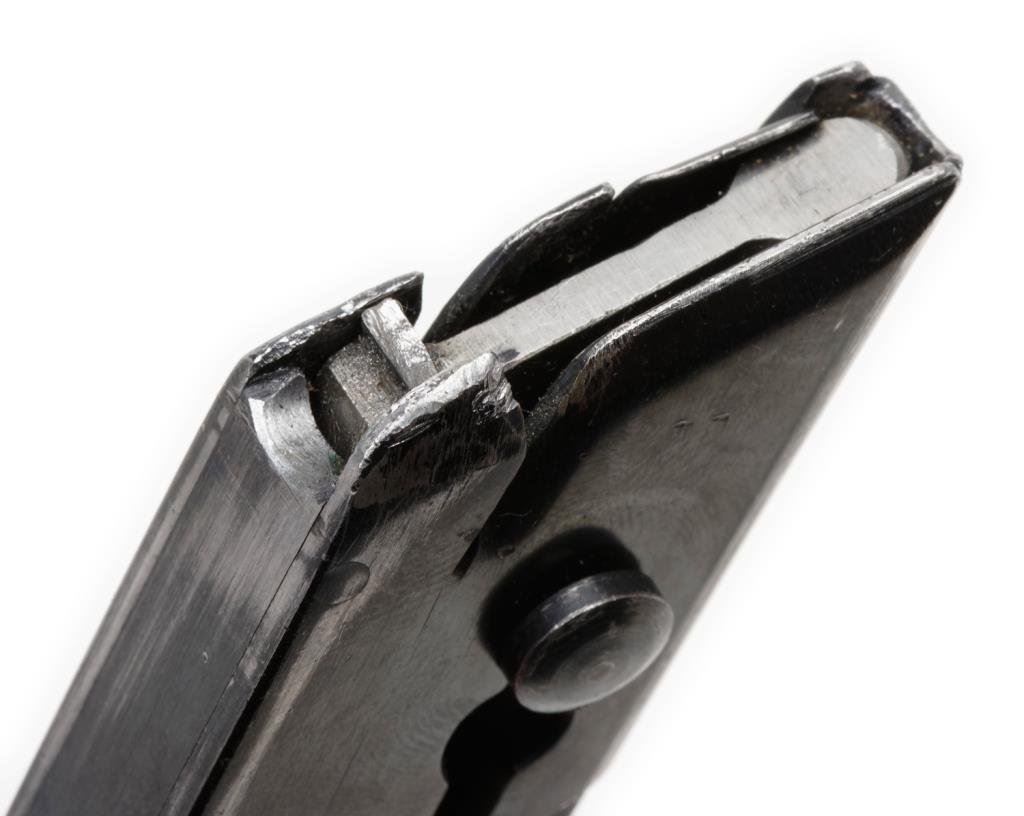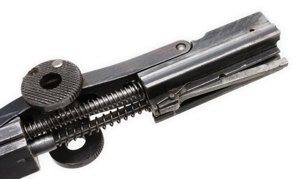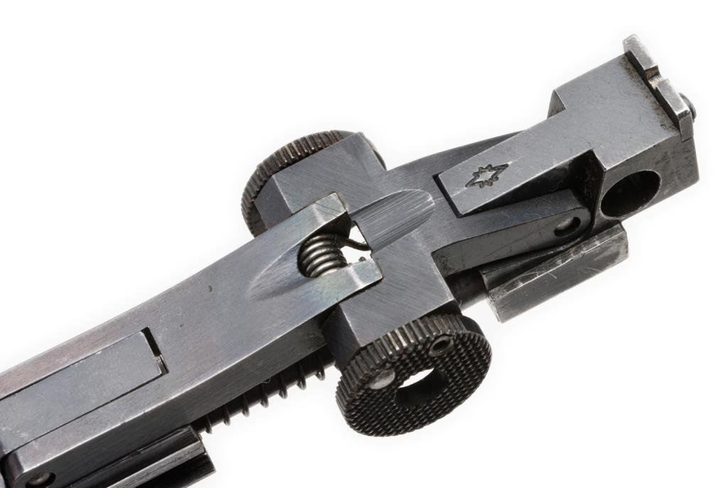 Luger .22 caliber conversion unit with Nazi proofs in wood case. Eagle 77 proof on the clip. Erma and 280 eagle proof on the case. Includes toggle, BBL and clip. Showing most of it’s original finish. Missing small parts. Very unusual to find Nazi proofed and clip alone valued at over $300. Est.: $350-$700