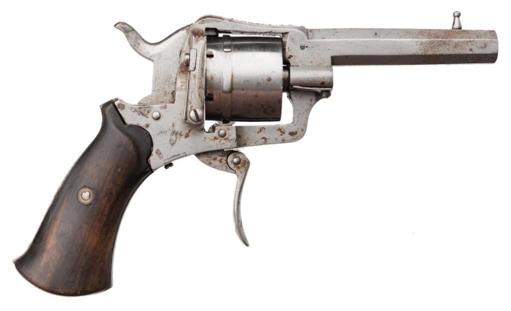 Lot 1389 Pinfire revolver engraved on the top strap “Exposition 1880 Bruxelles”; go
