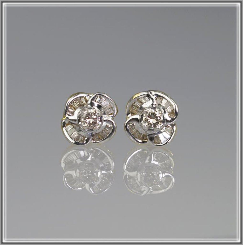 Lot 1413 Brilliant Diamond Earrings in Flower Design with 2 round cut and 40 baguet