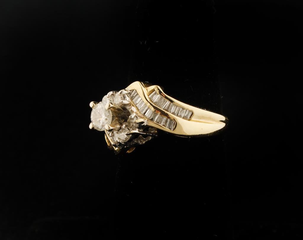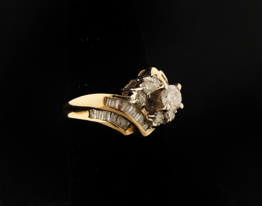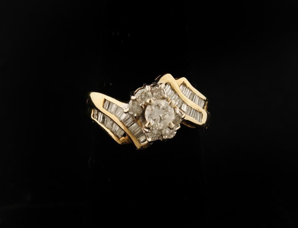 Ladies Diamond Cluster ring set with baguettes and round diamonds center approx. 0.5ct, total diamond wt approx. 1ct. Est.$1,500-2,000