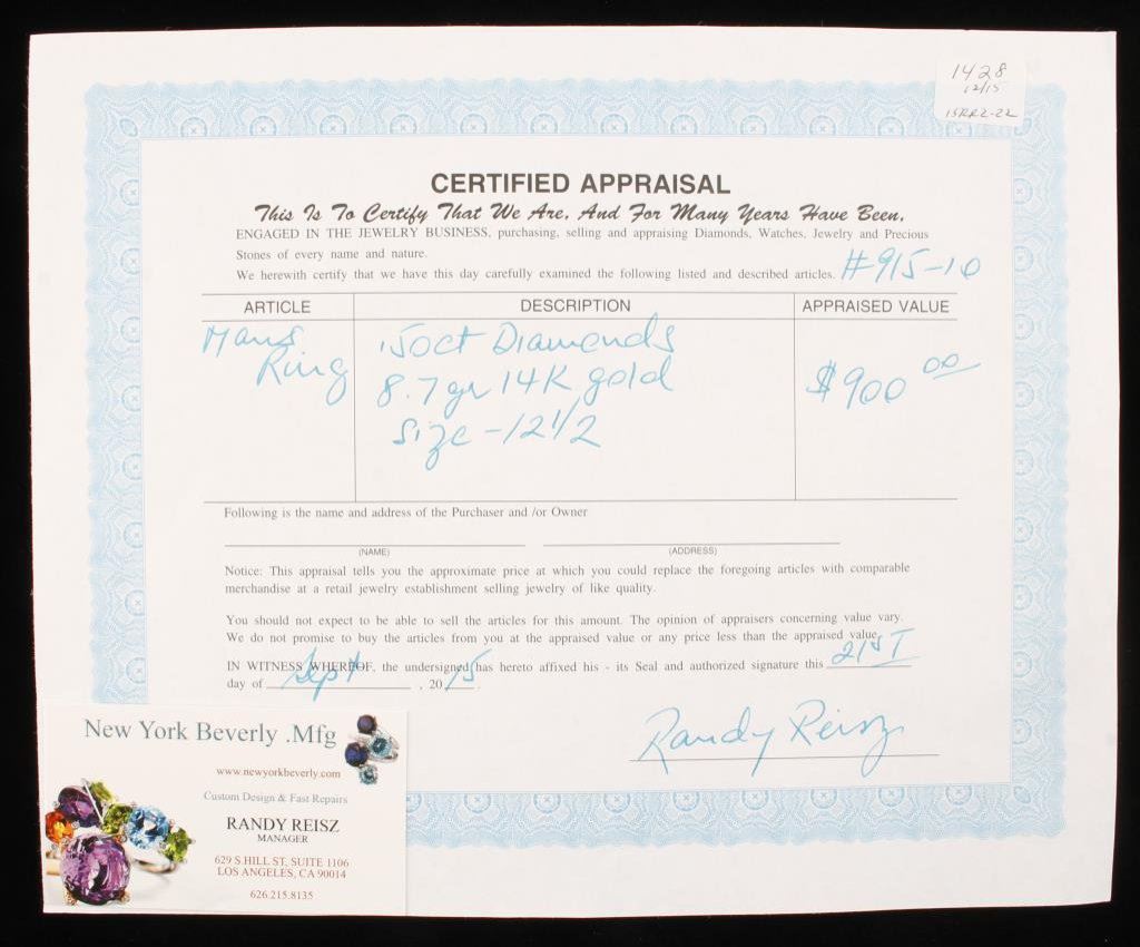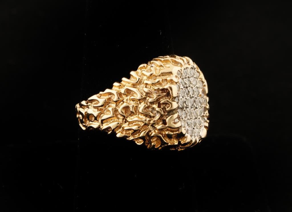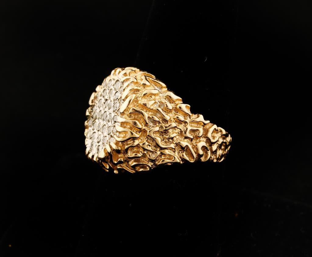 Lot 1428 Men's custom ring set in Pave Diamonds approx .50 carat in 8.7 gr 14k gold