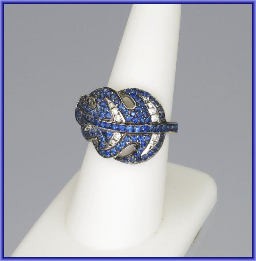 Lot 1438 Sophisticated Cartier Style Blue Sapphire and Diamond Ring in leaf design