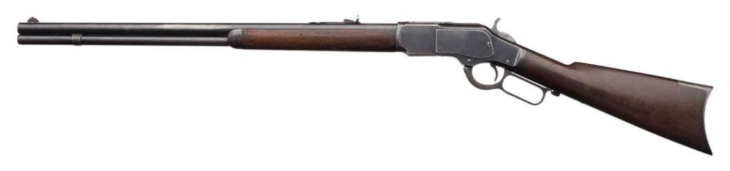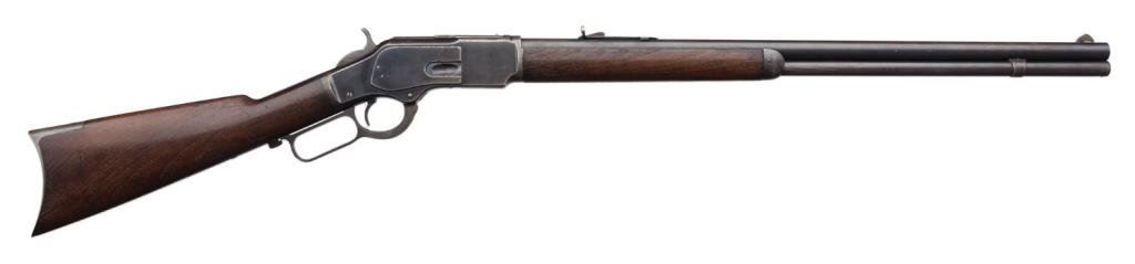 Winchester Model 1873 lever action rifle, .38 W.C.F. caliber, 24” round barrel, S/N 288217, considerable original blue finish, wood stocks in overall very good to fine condition with a very good to fine bore, crisp action and markings, very good to fine wood stocks. Est.: $2,000-$4,000.