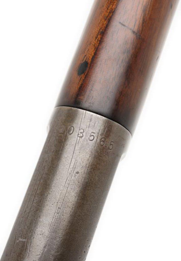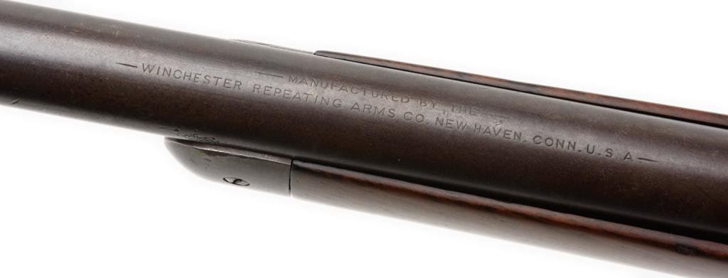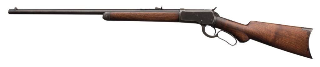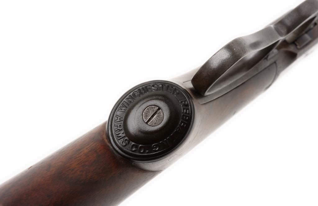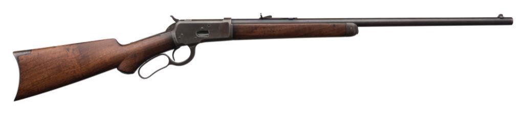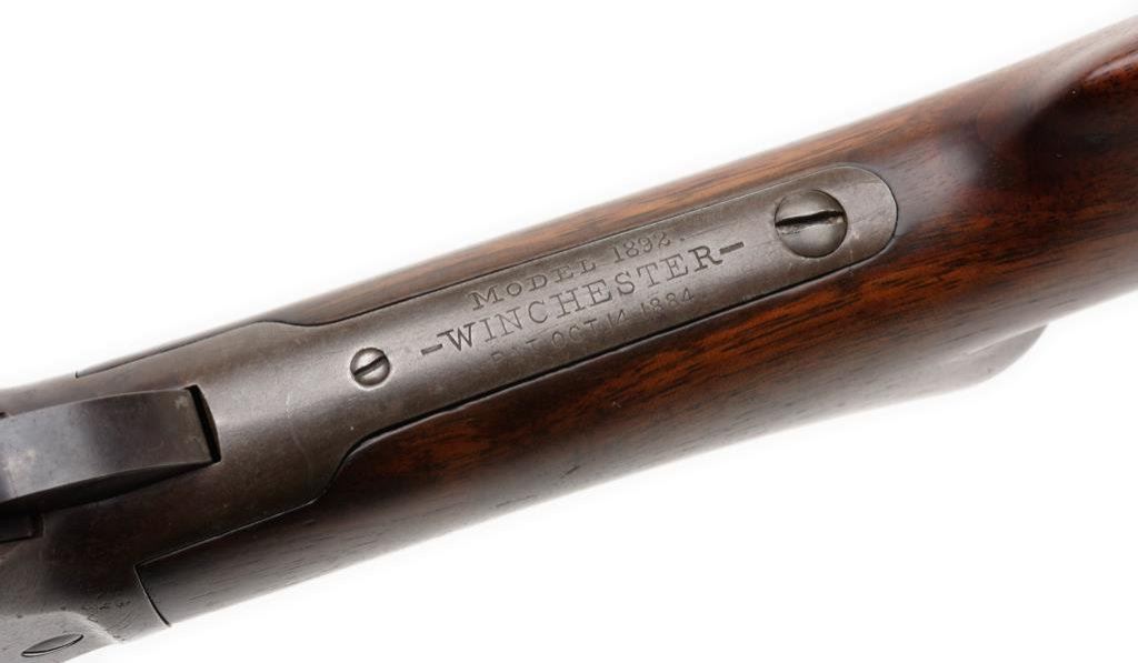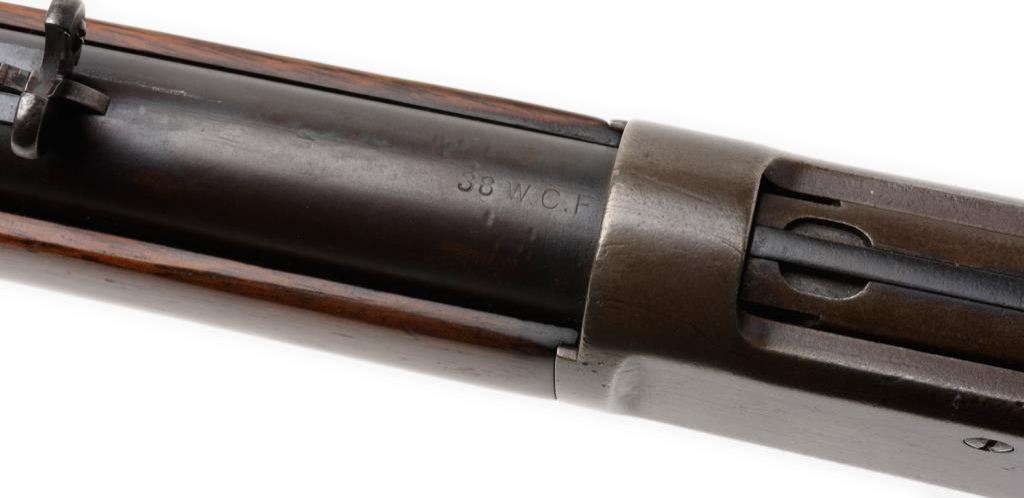 Special order Winchester Model 1892 lever action rifle, .38-40 caliber, 24” round barrel, S/N 103565, half magazine, smooth pistol grip butt stock, crescent butt plate in overall very good condition displaying a brown patina mixed with areas of muted original blue on the barrel, crisp action, good markings and a bright bore. The wood stocks are overall good. Est.: $2,400-$4,800.