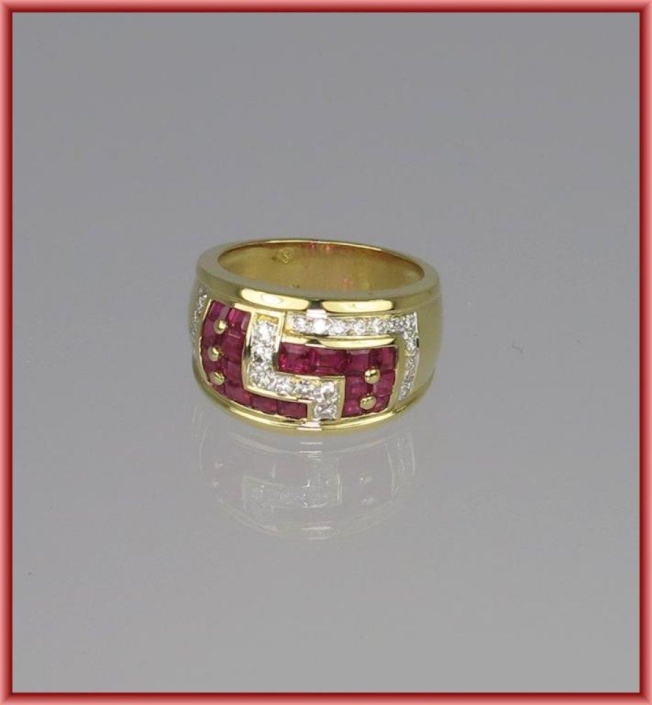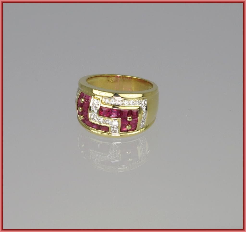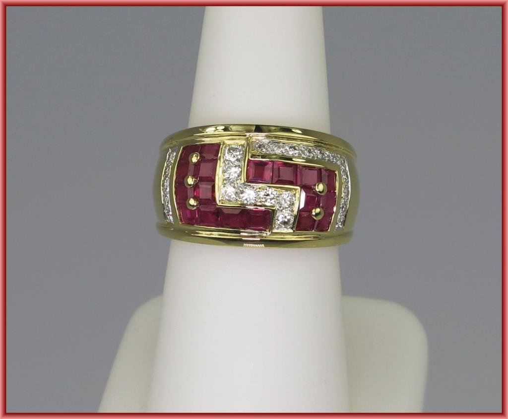 Lot 1461 Ladies Contemporary FINE Burmese Ruby and Diamond Band with unique geometr