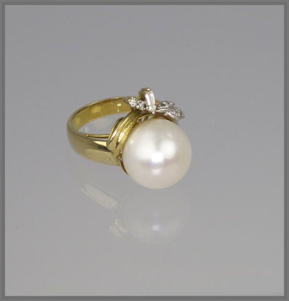 Lot 1462 Old Hollywood Style 14.00mm Diameter Pearl and Diamond Ring cultured pearl