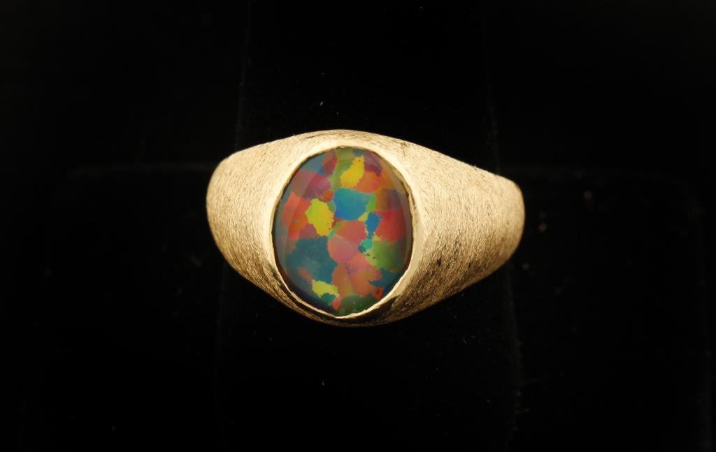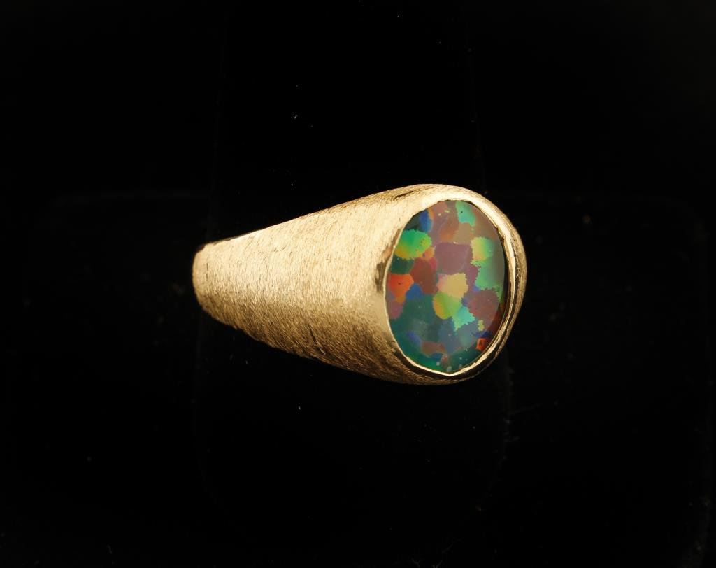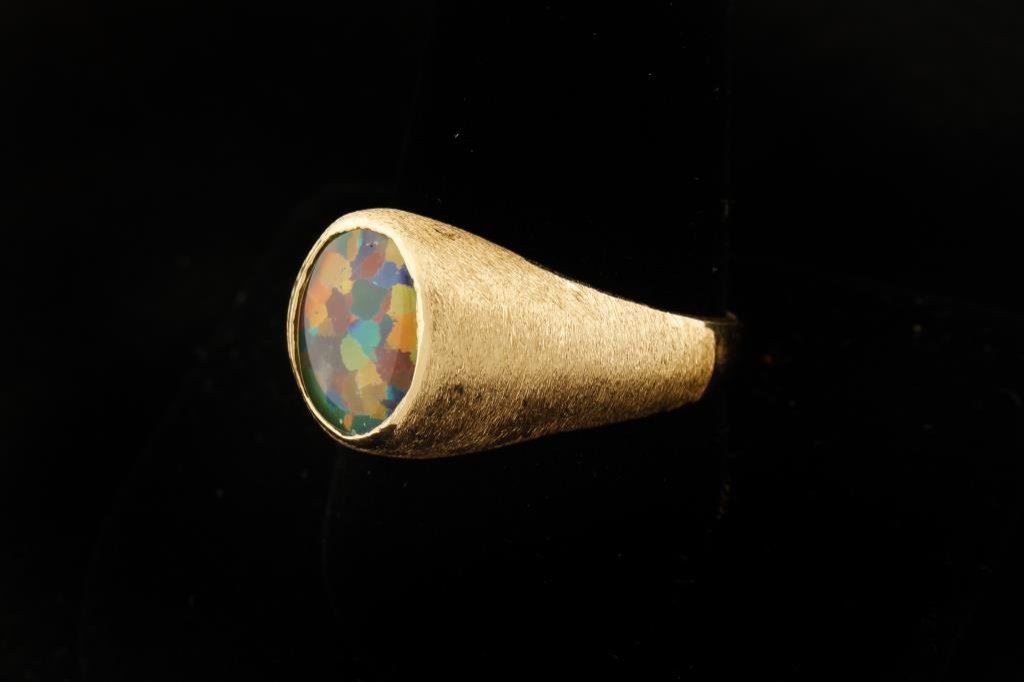 4.0 carat Black Opal Doublet set in 12.0 gr 14k gold, size 12 1/2. Est:$600-1,200