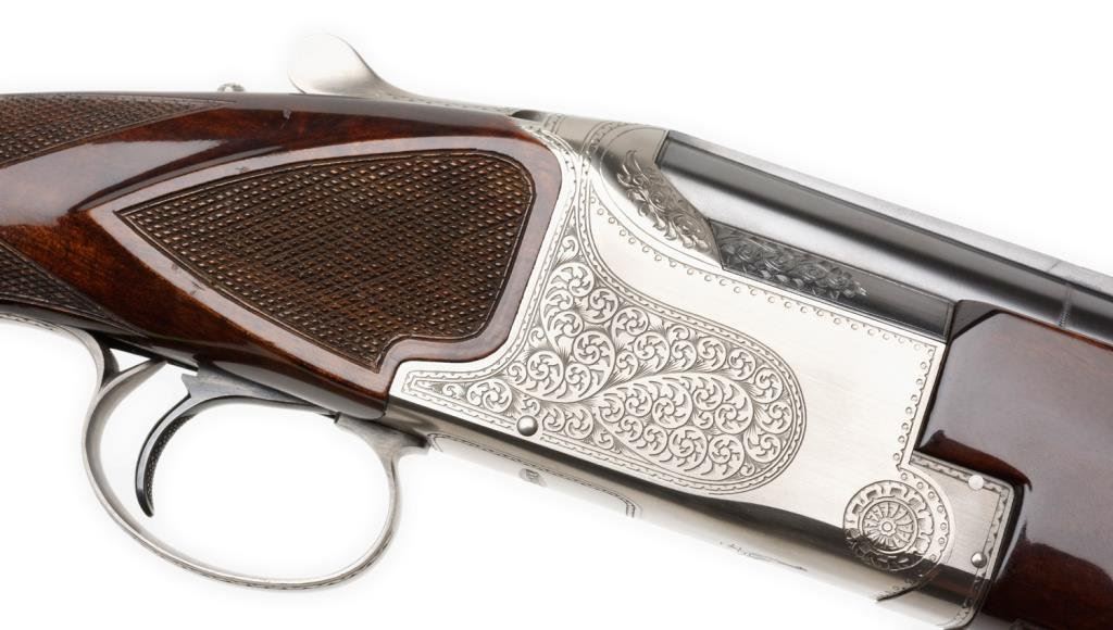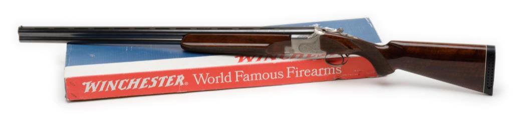 Winchester model 101 O/U pigeon grade 12 GA trap shotgun like new in the box. S/N PK313131 with 30” BBL. Choked full and improved modified with factory pad. Very little to no use. Selected by dealer for odd serial number and held back till purchased by Utah Winchester collector. Est.: $1500-$3000