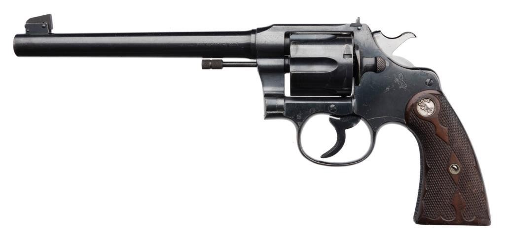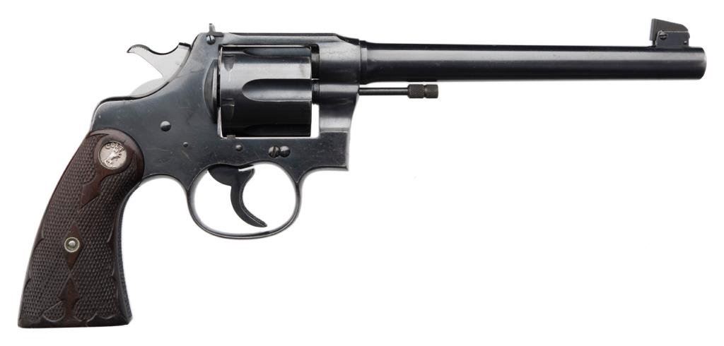 Lot 1485 Colt New Service target model in .45 L.C., 7 ½” BBL revolver with inset me