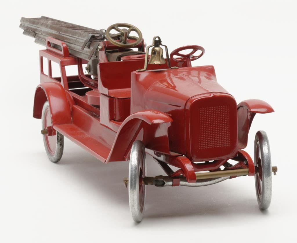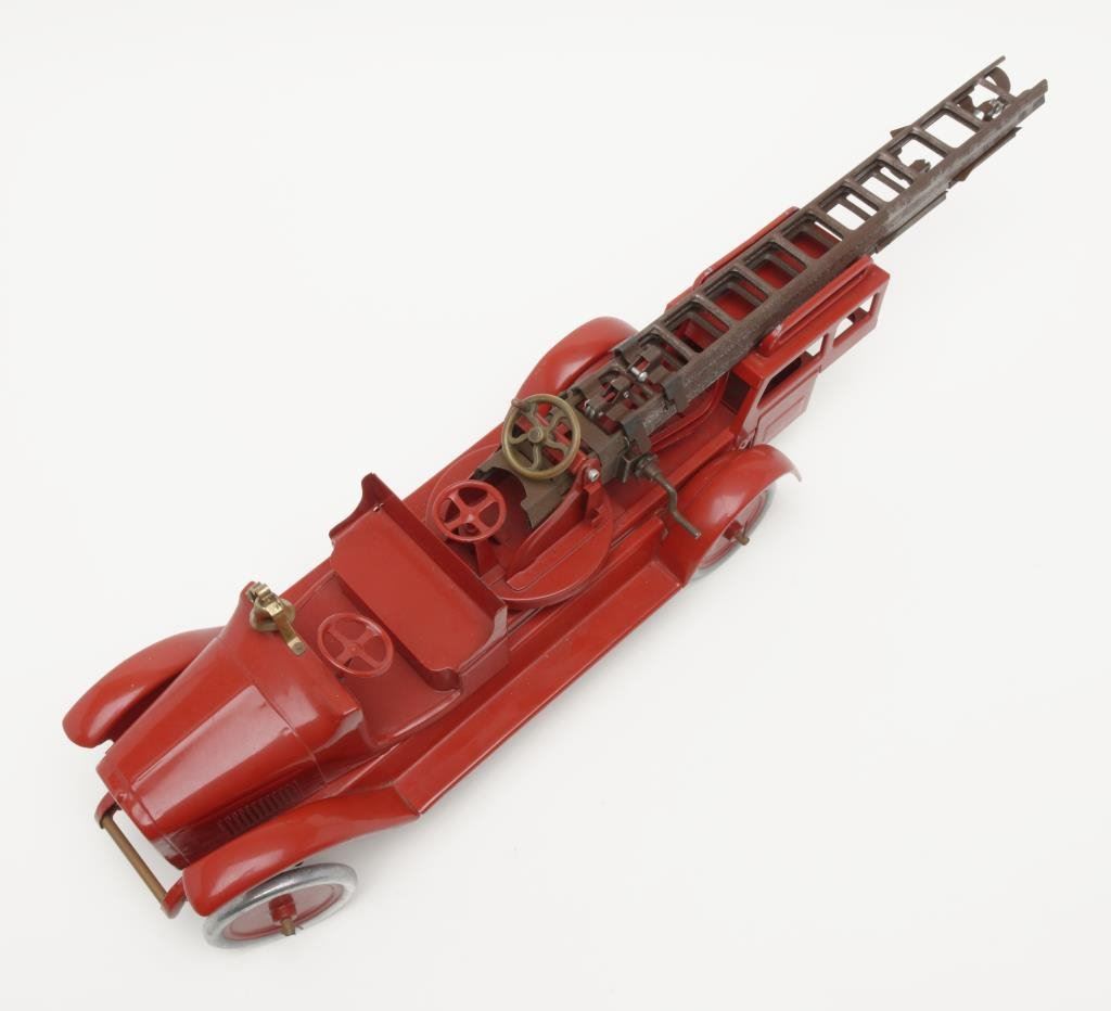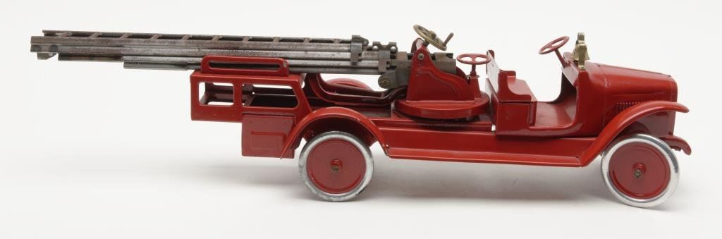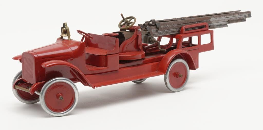 Lot 1485b 1929 “Buddy” L firetruck with aerial ladder in professionally restored con