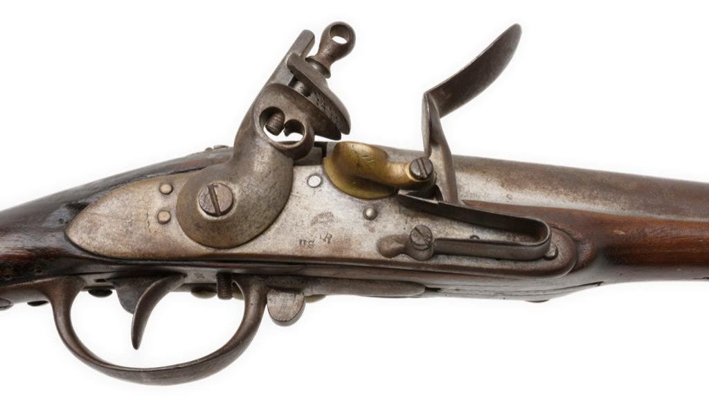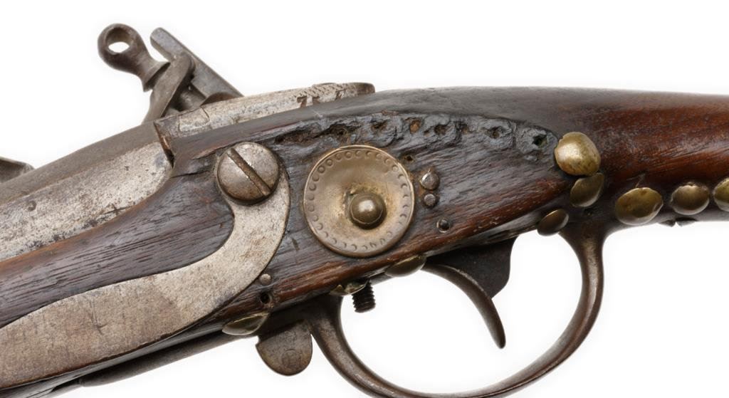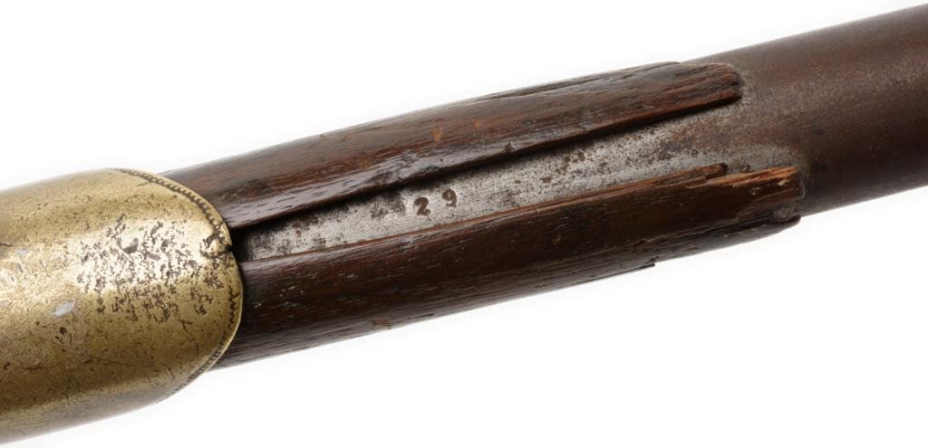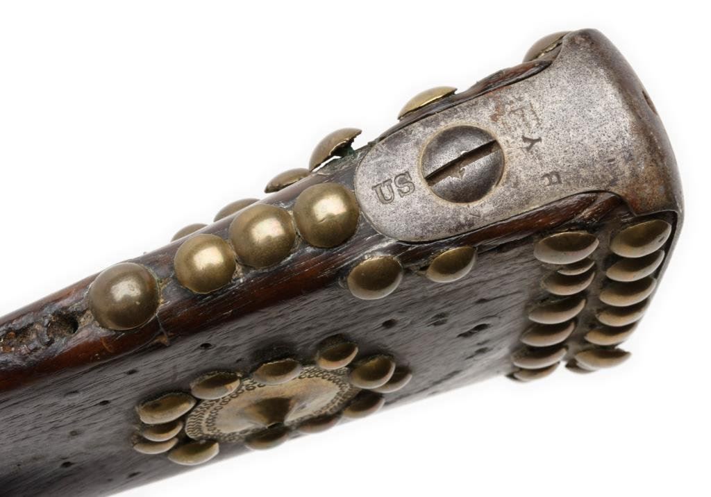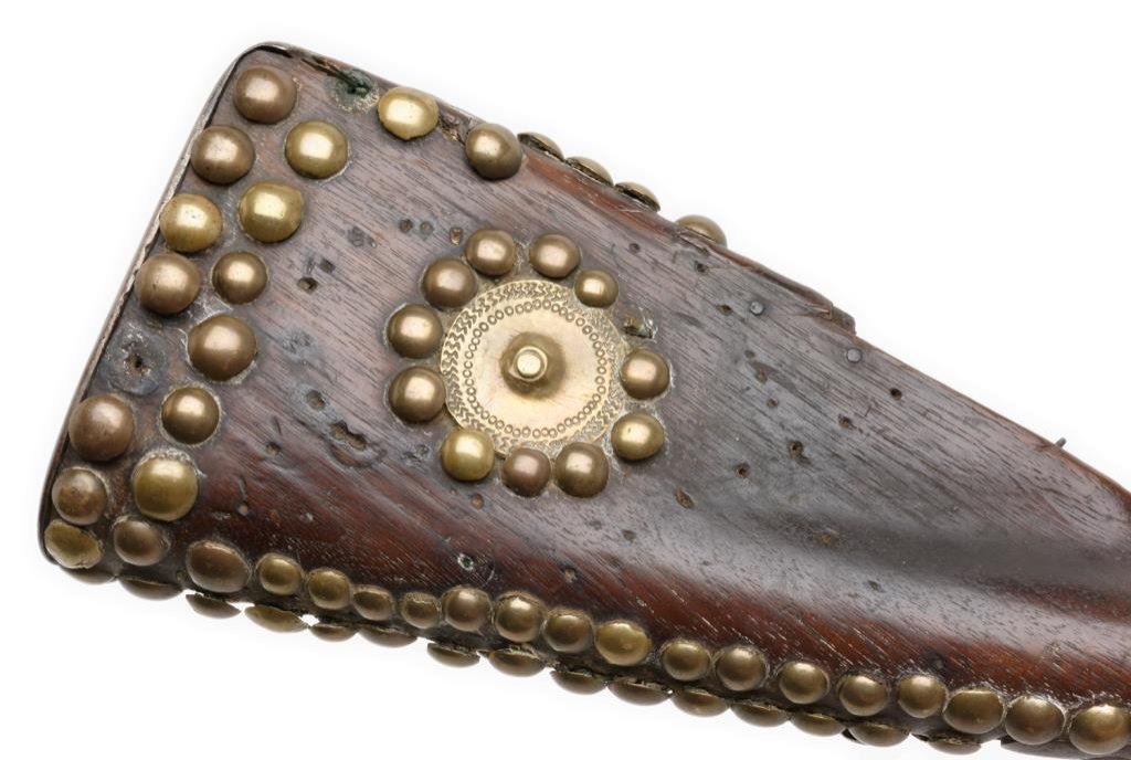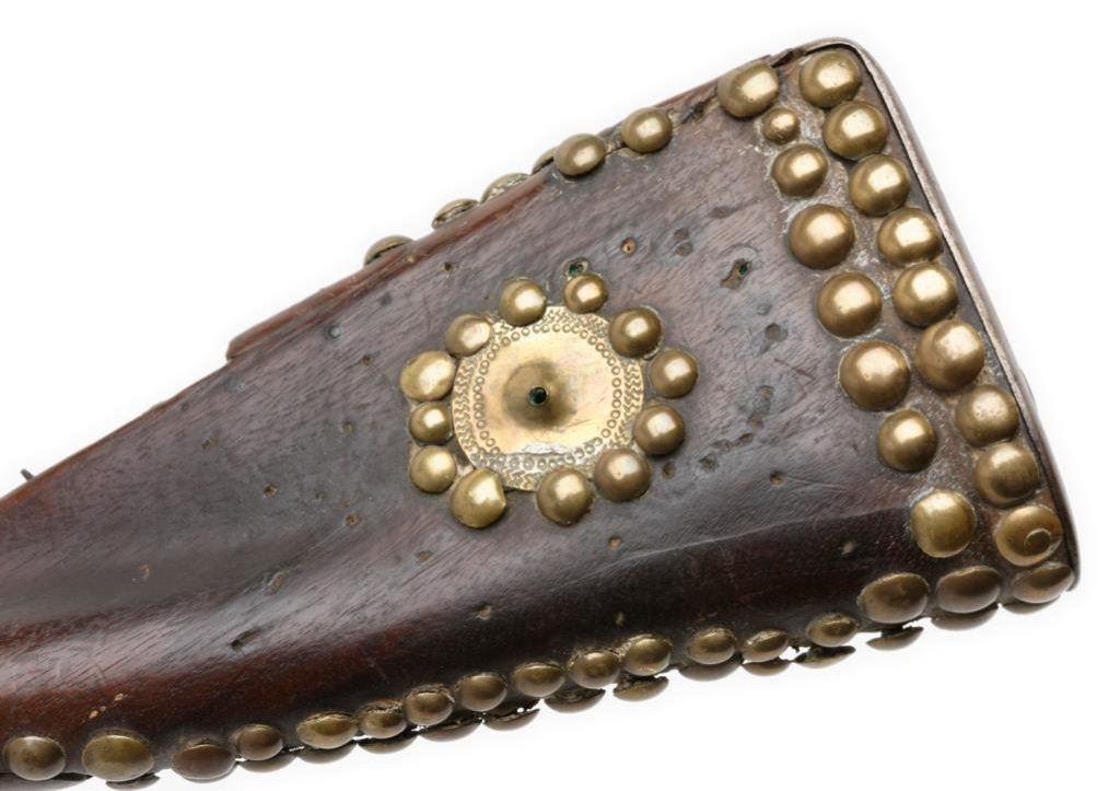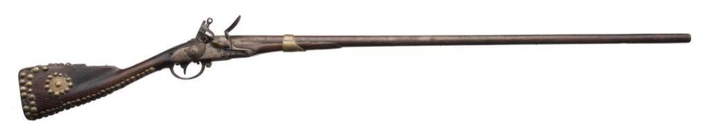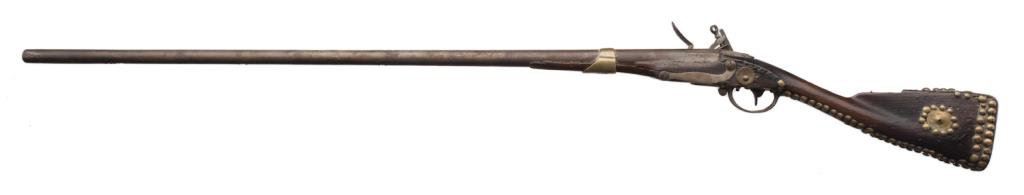 Lot 1493 U.S. flintlock musket with large tacked decoration in Indian fashion; also