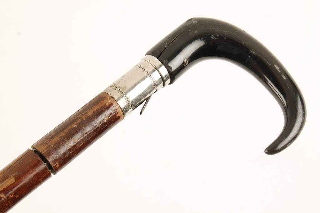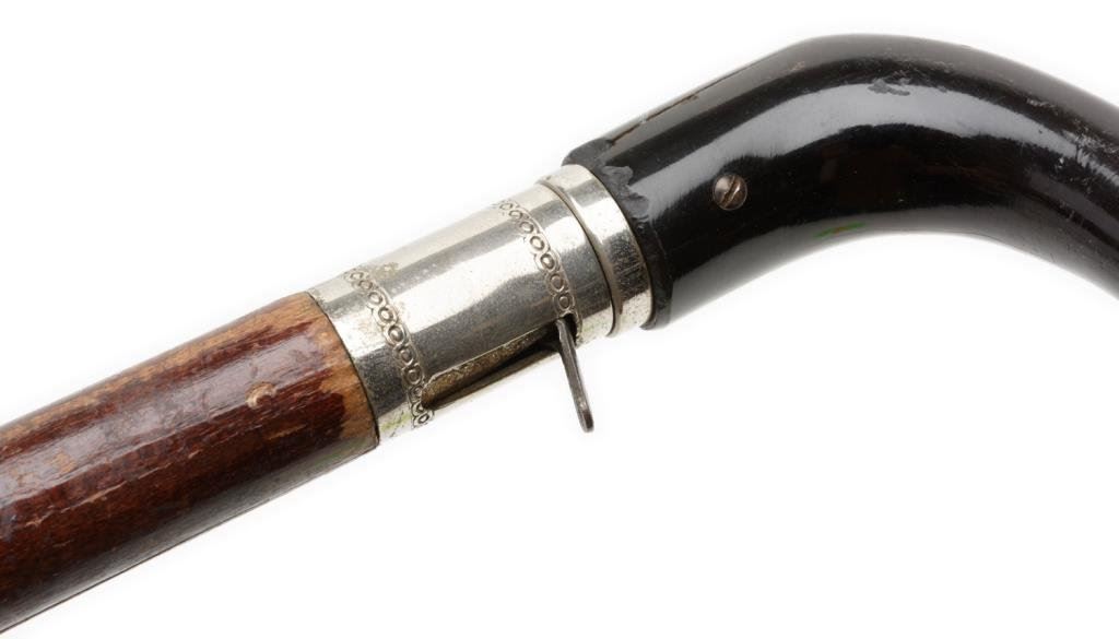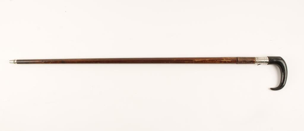 Continental manufactured cane gun ca 1870’s in approximately .30RF caliber with horn grip; approximately 33” overall, good action; good to very good overall. Est.: $900-$1,800.
