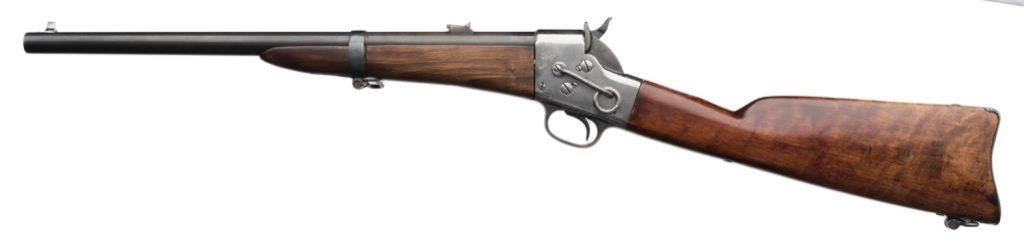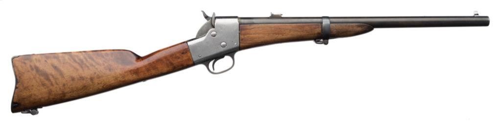 Remington Split breech .50 caliber carbine; select stock showing faint cartouche; action polished; good to very good condition overall. Est.: $750-$1,500.