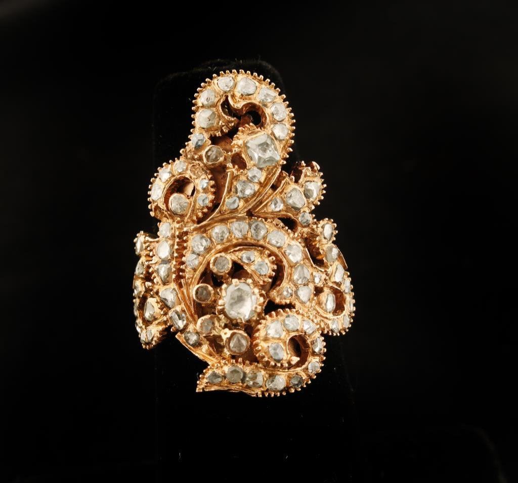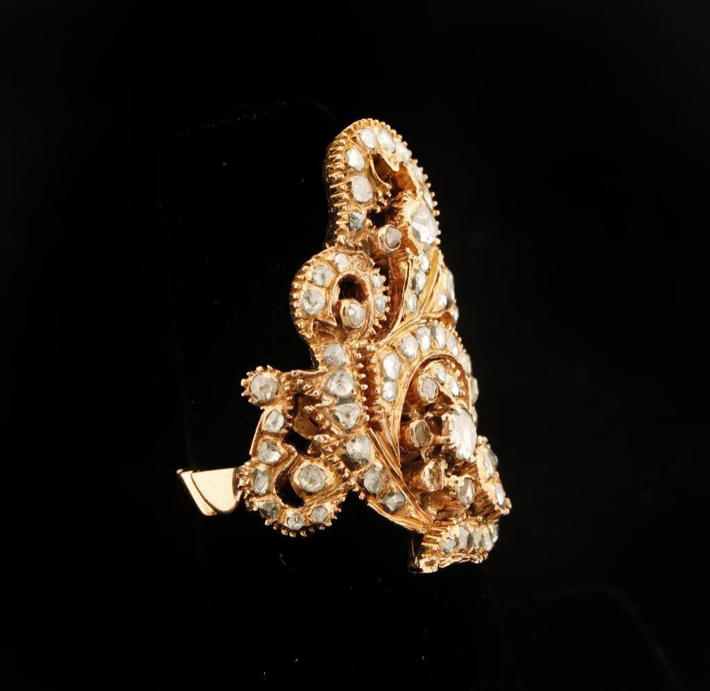 Antique Rose cut Diamonds approx 1.25 carat in 10.3 gr 14k gold, size 6. Est:$900-1,800