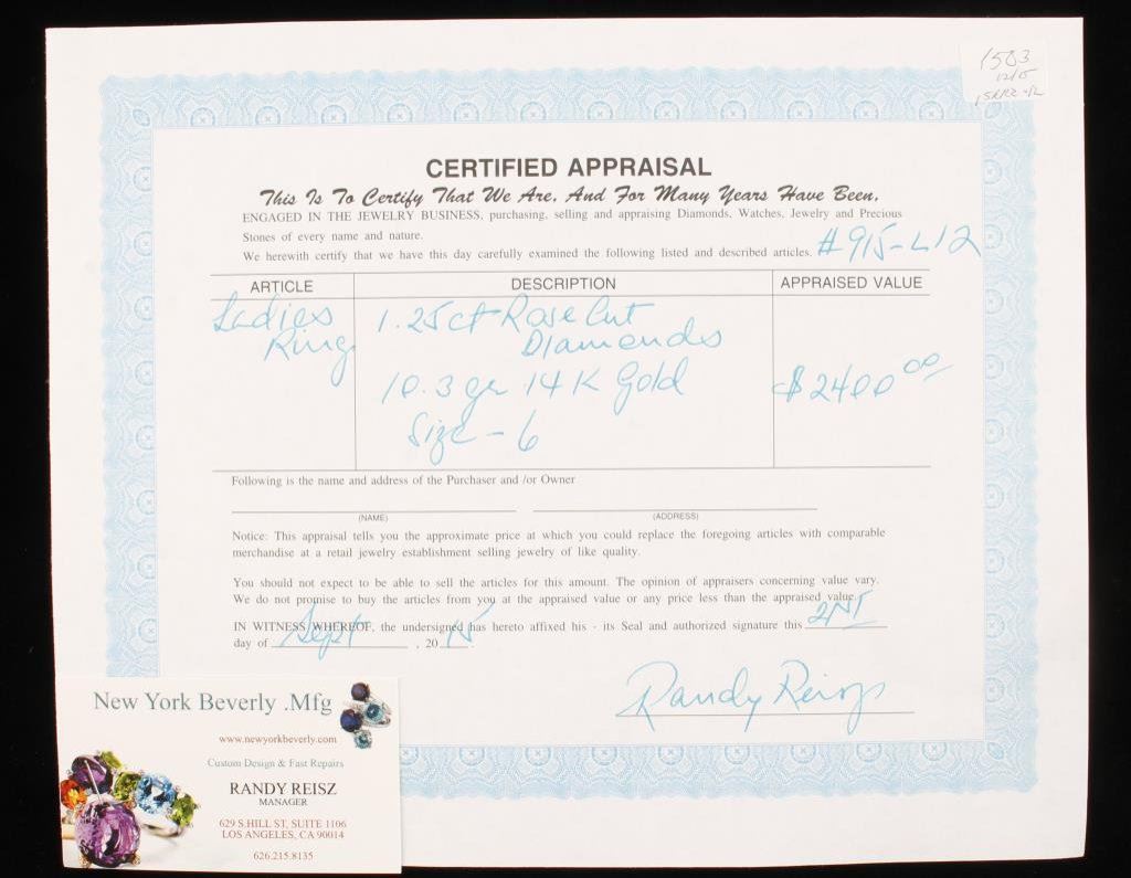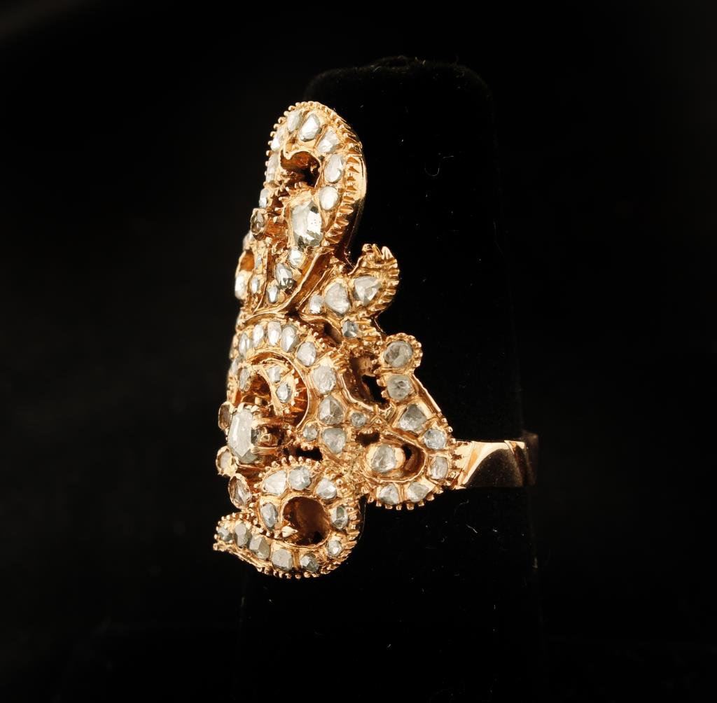 Lot 1503 Antique Rose cut Diamonds approx 1.25 carat in 10.3 gr 14k gold, size 6. E