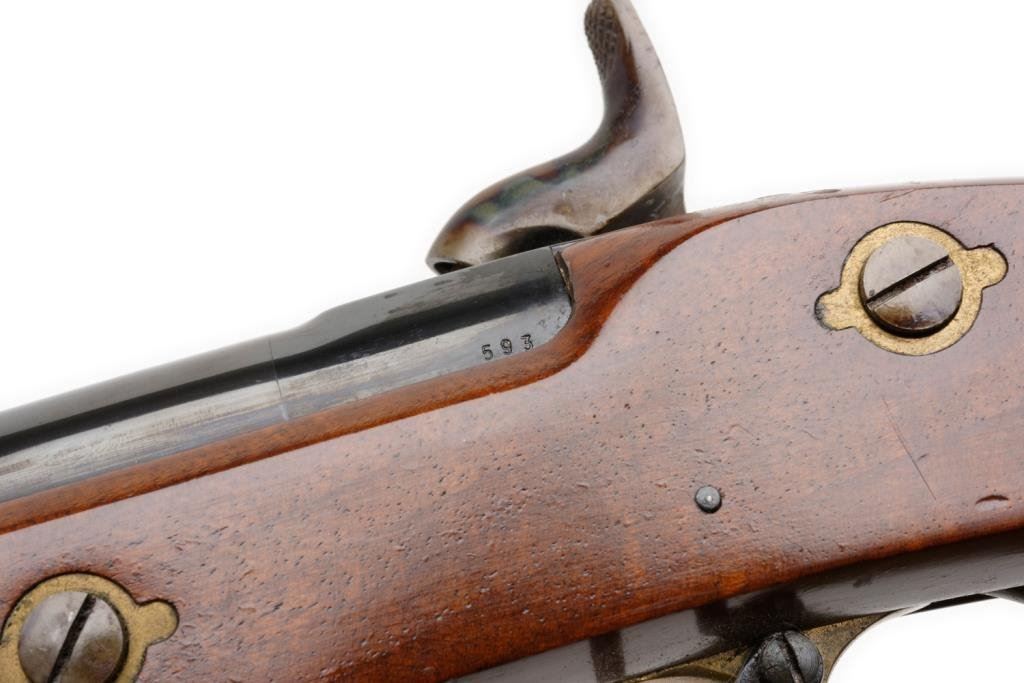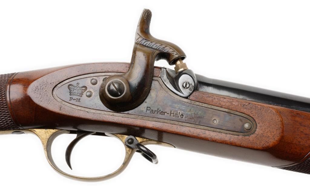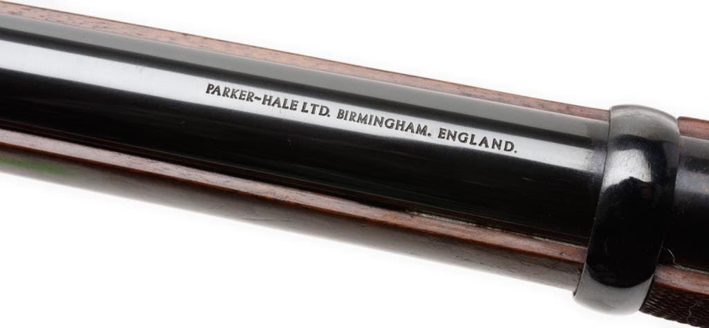 Parker Hale Volunteer rifle of Enfield pattern in .451 caliber with Rigby style rifling, SN:593. Blue and case hardened. In fine to excellent condition. Fine quality. Est.: $400-$800