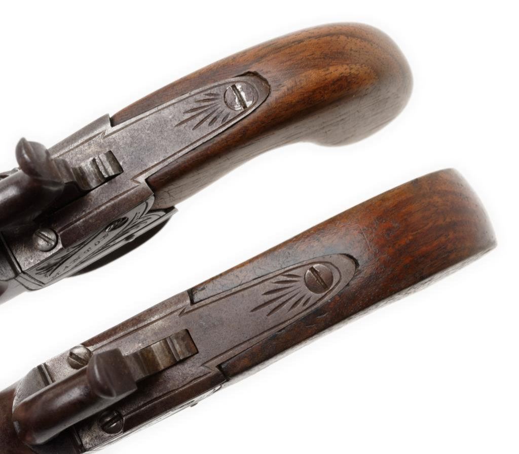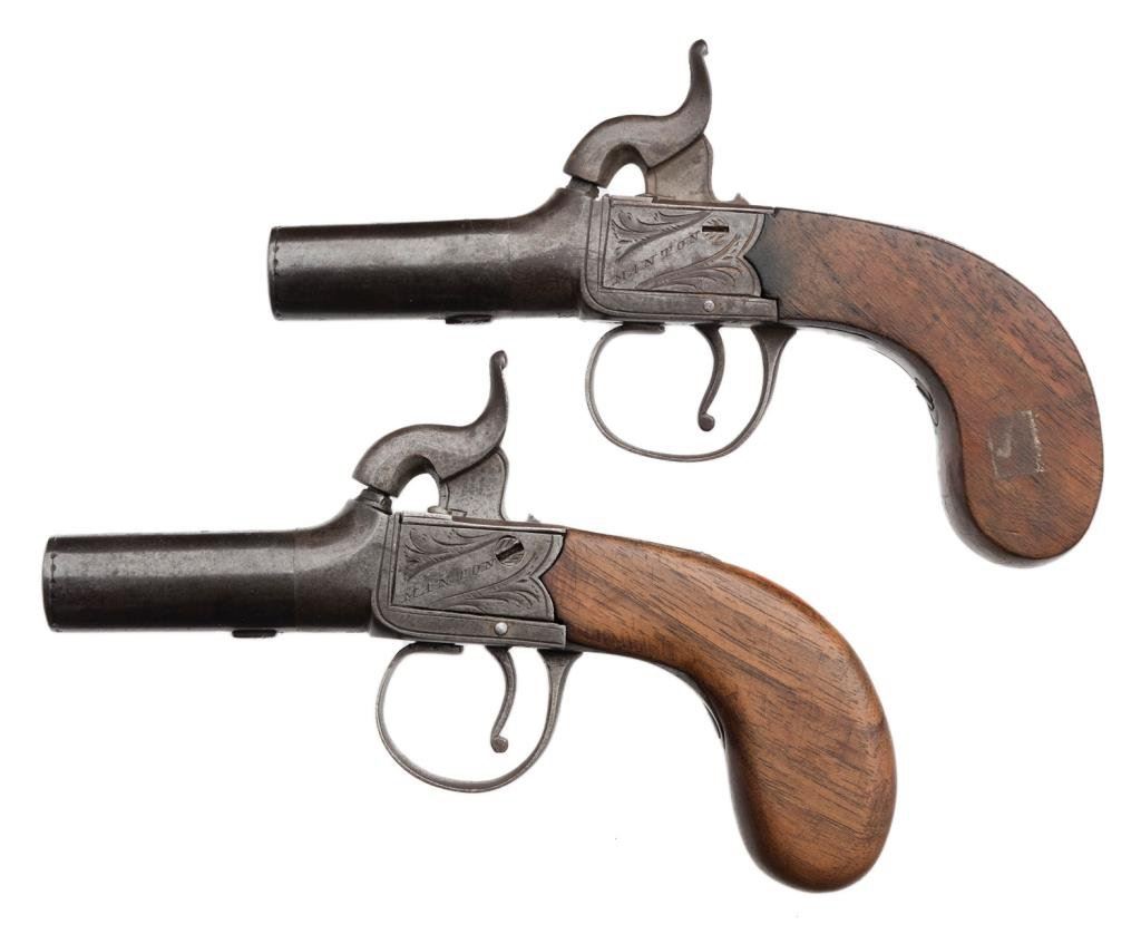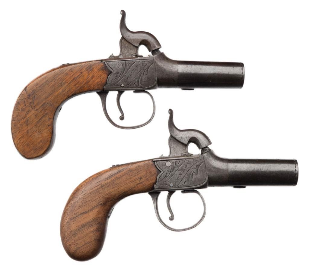 Lot 1590 Pair of British muff pistols marked “Manton London”. Cross keys proofed an