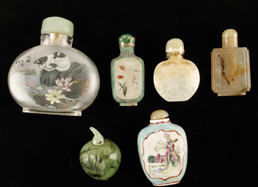 Lot of 6 various snuff bottles. Est.: $200-$400.