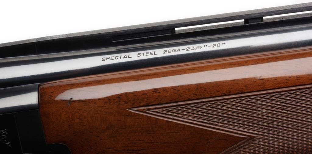 Browning Citori 28GA O/U shotgun with a 28” BBL, rounded pistol grip choked full and mod, SN: 16787NY773 with original butt plate, single trigger and auto ejector. In fine to excellent condition with minor use and storage marks only. 96%-98% overall. $1400-$2800