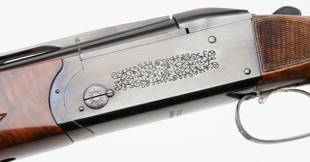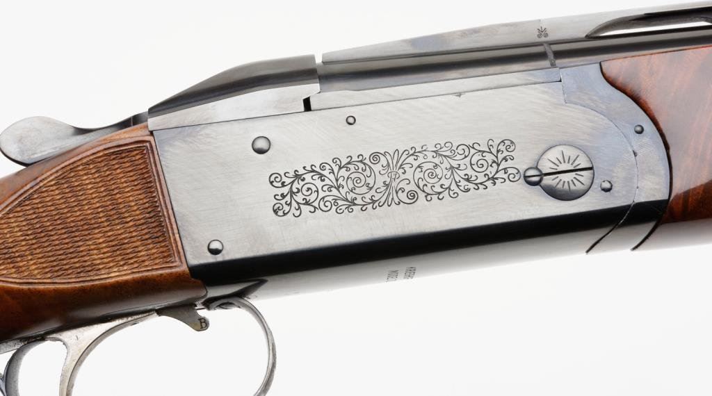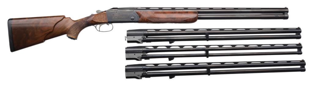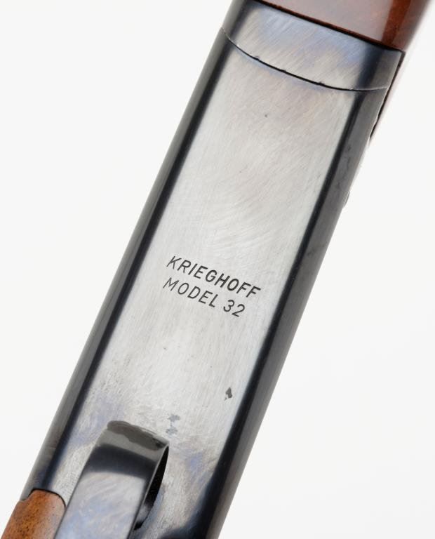 Cased Krieghoff Model 32 over/under semi-automatic shotgun, 4 barrel set: 10 gauge, 28” barrels; 20 gauge, 28” barrels; 28 gauge, 28” barrels and .410 gauge, 28” barrels; S/N 9054, blued finish, checkered wood stock with Hydro-shock butt stock. This set is in overall fine condition with fine bores, crisp actions and beautiful wood. Est.: $5,000-$8,000.