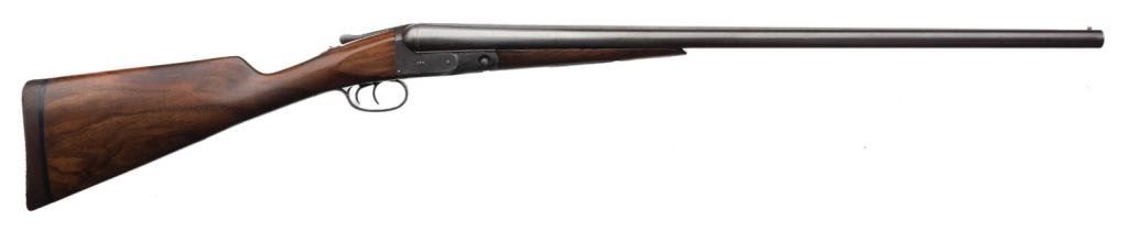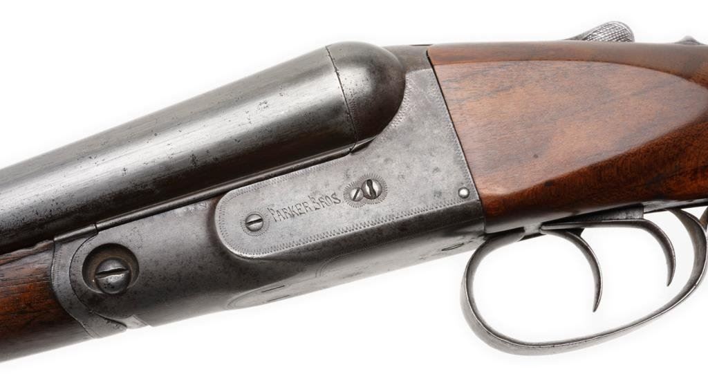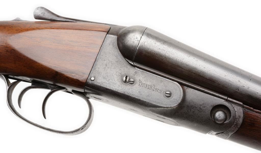 Parker VH Grade hammerless side-by-side shotgun, 12 gauge, 28.5” barrels, S/N 96153, plain wood stocks with added hard rubber butt pad; in overall very good condition with very good actions, good bores and very good wood as re-finished. Est.: $900-$1,800.
