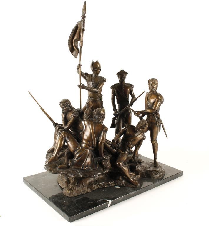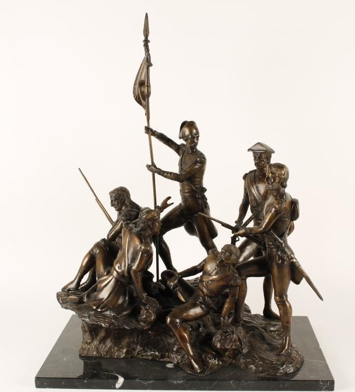 Bronze of early 19th Century French soldiers with flags; approximately 27.5” tall and 21.25” across base; 20th Century, no signature. Est.: $500-$1,000.