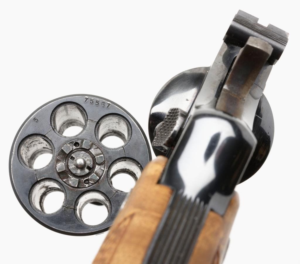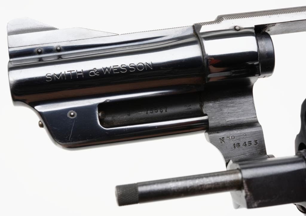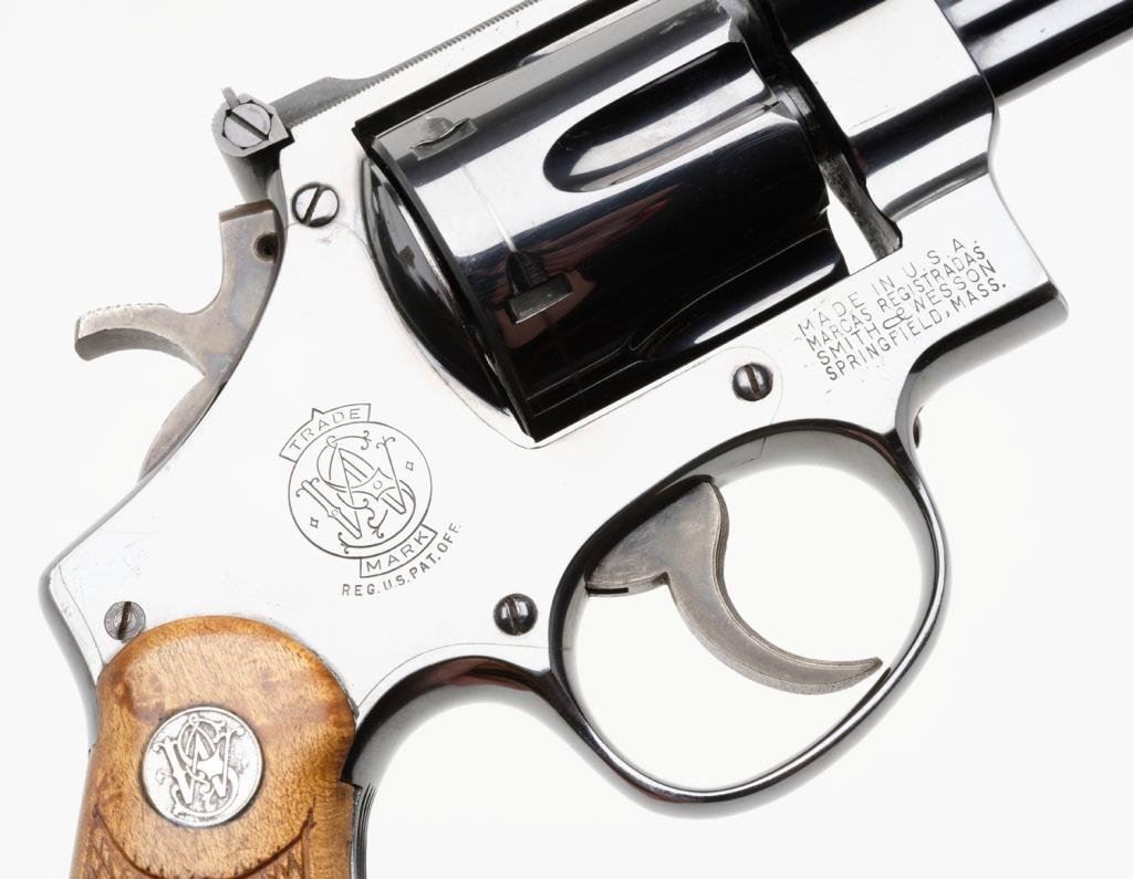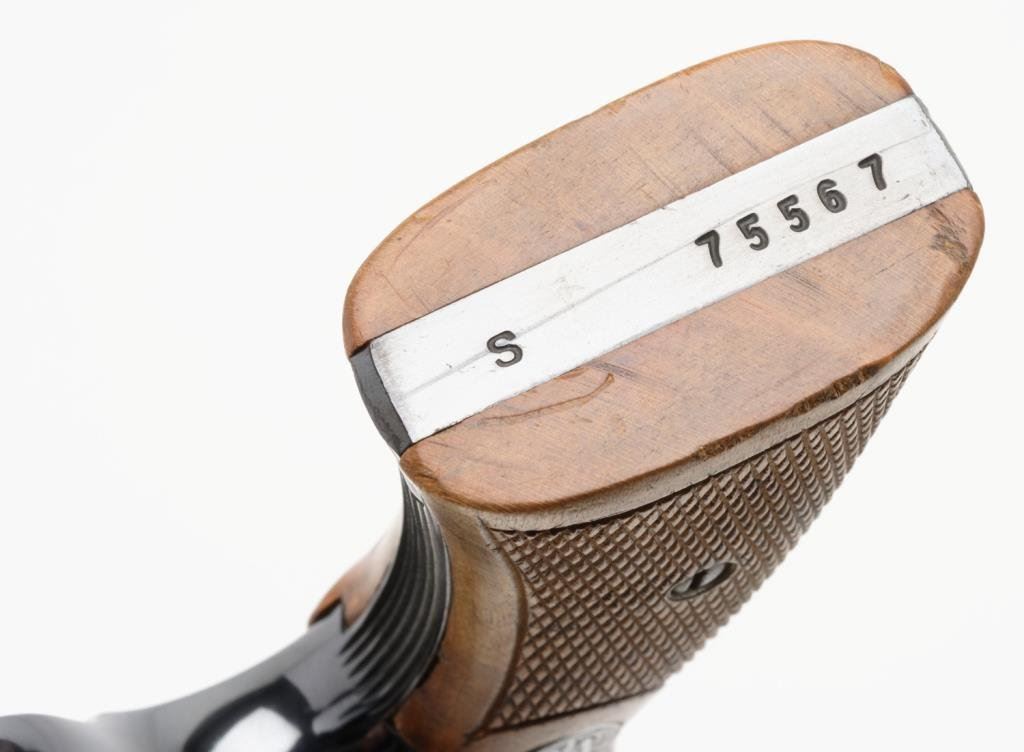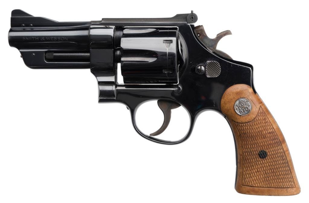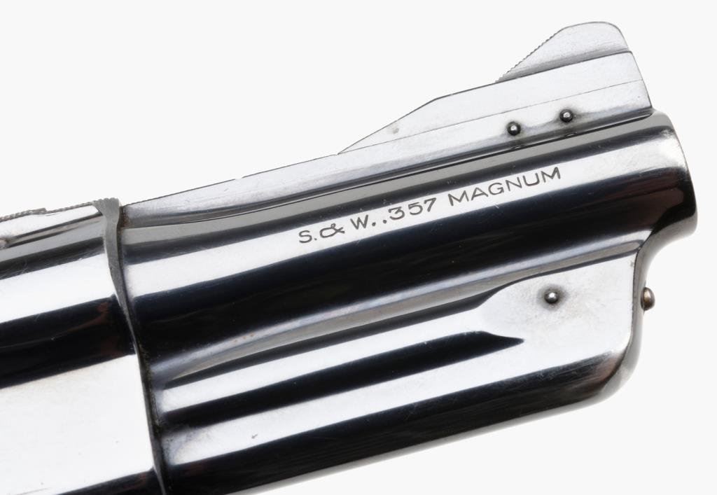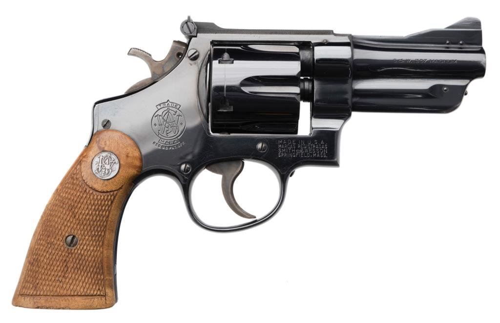 **Early 5-screw Smith & Wesson DA revolver, .357 Magnum caliber, scarce 3.5” barrel, S/N S 75567, blued finish, checkered wood medallion grips in overall fine to excellent condition and desirable. Est.: $700-$1,500.