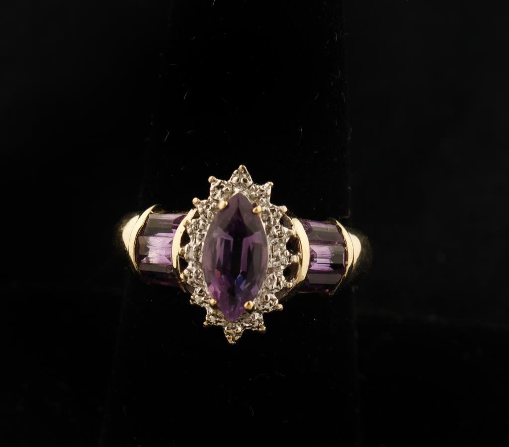 Lot 1673 Amethyst & Diamond Ladies Ring mounted in 10K gold. Very attractive. Vinta