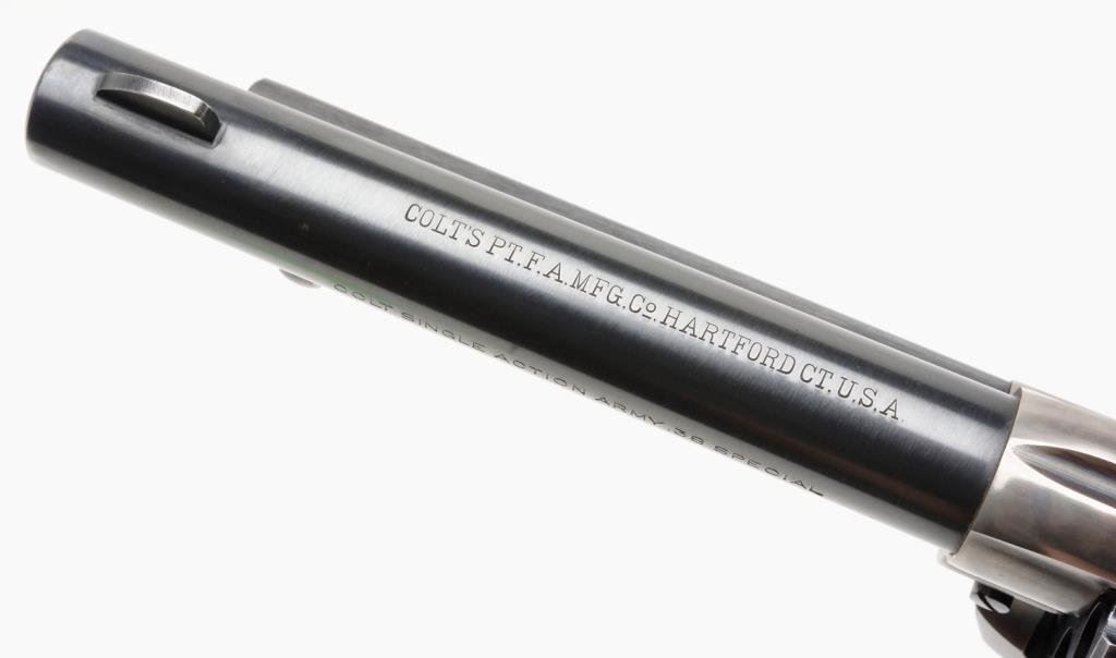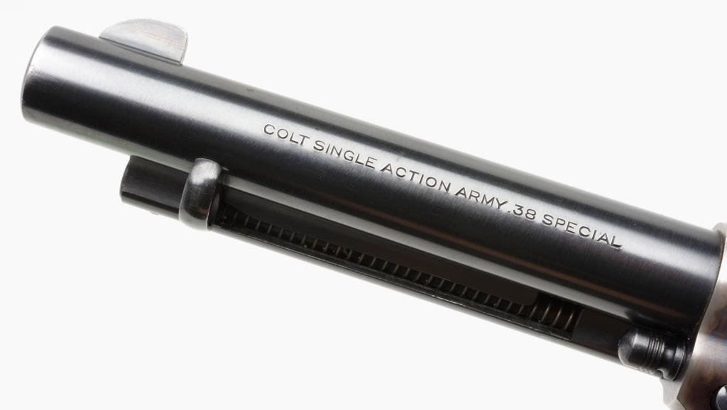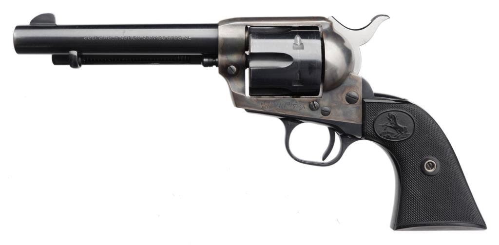**Colt 2nd Generation SAA revolver, .38 Special caliber, 5.5” barrel, S/N 19645SA, blued and case hardned finish in overall excellent condition. Est.: $2,000-$2,600.