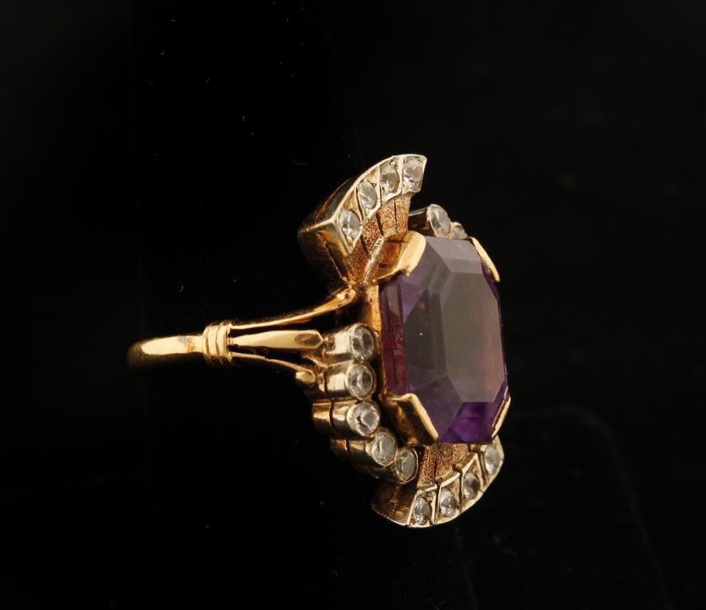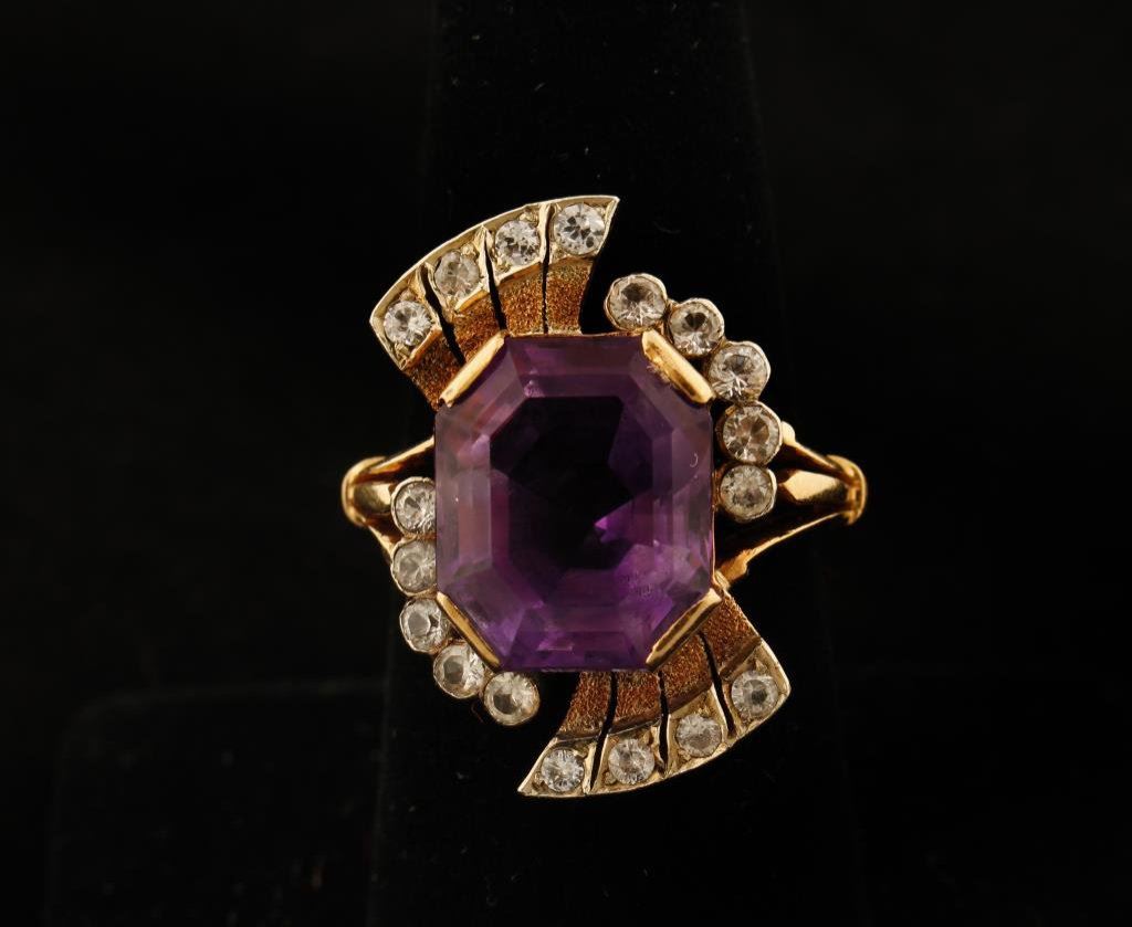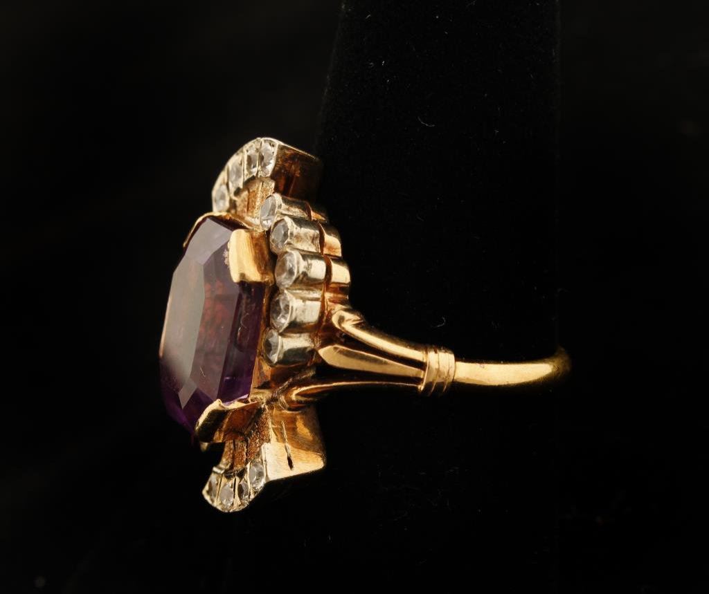 Lot 1710 Ladies circa 1940's-1950's ring set with 6.0 carat Amethyst and approx. .7