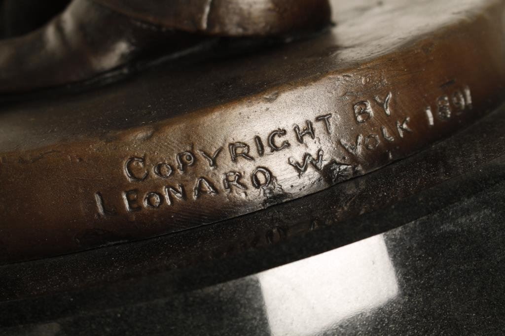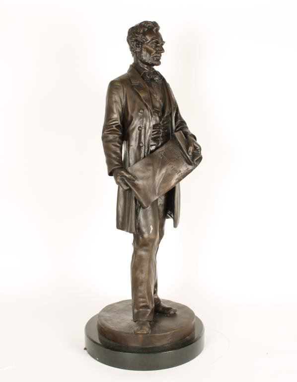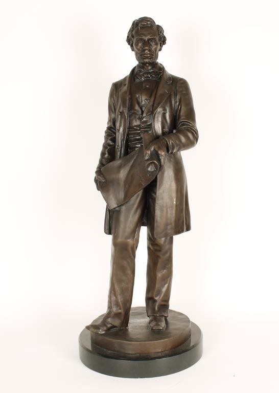 Bronze of Abraham Lincoln marked “Copyright Leonard Volk, 1891”; 32.5” not including 2” marble base. Est.: $600-$1,200.