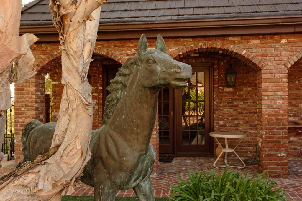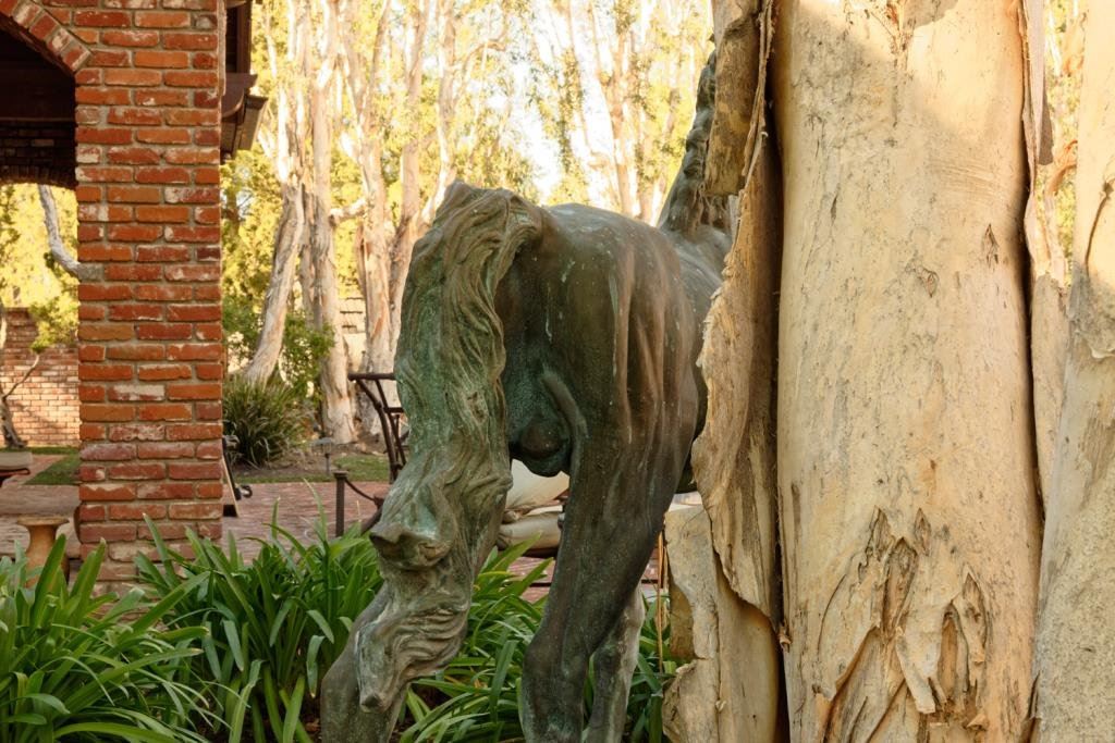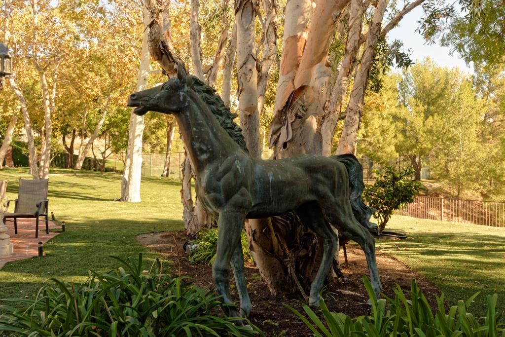 Cast bronze of horse. Measures 71" in height by 86". Good patina. About 300 lbs. Est.: $600-$1200