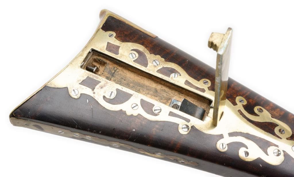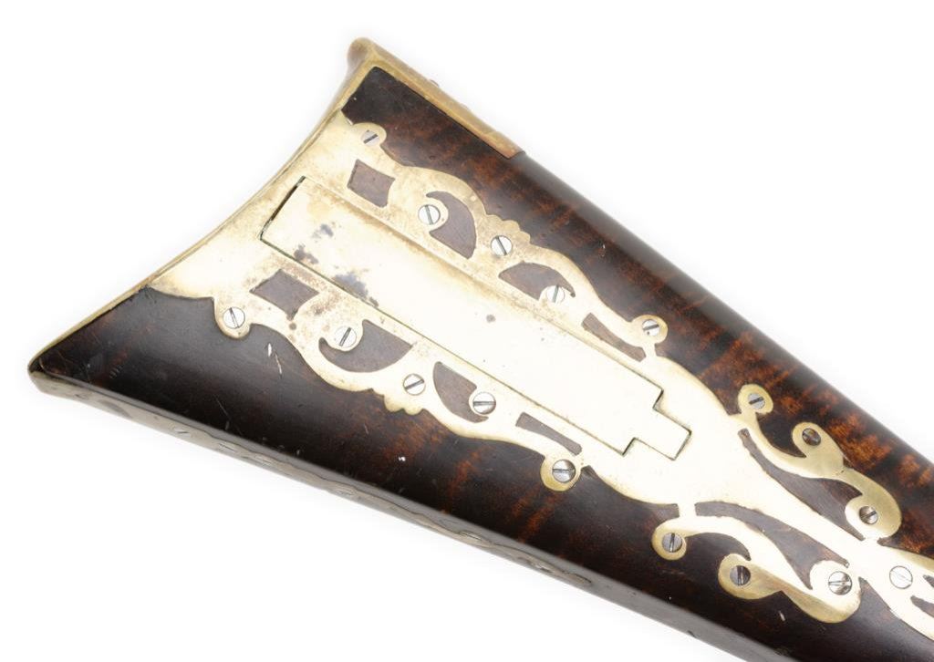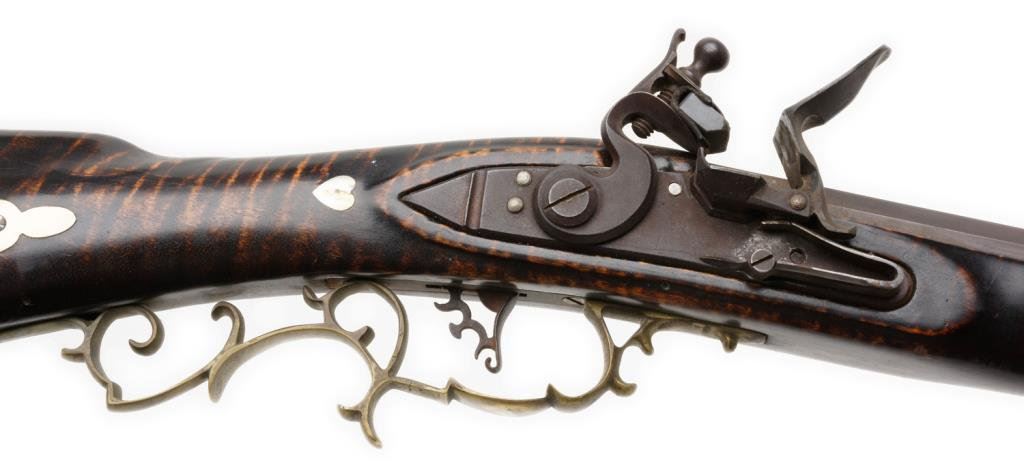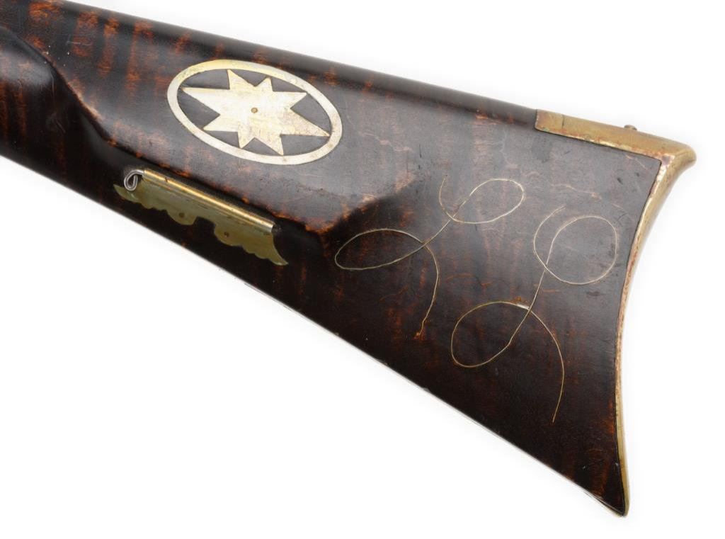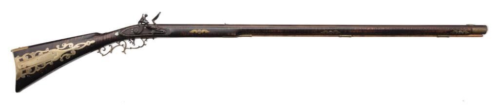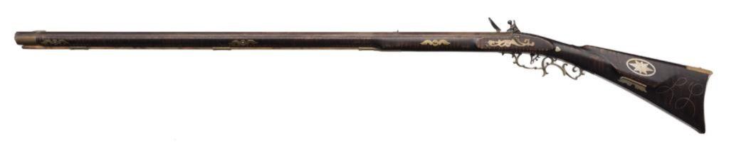 Lot 1777 Exhibition quality Kentucky style rifle with L.L. in wire inlay on the lef