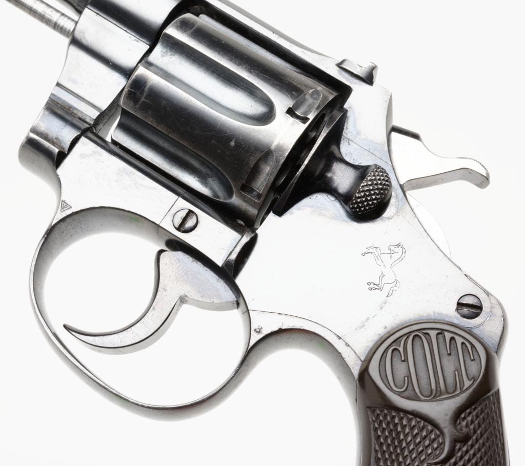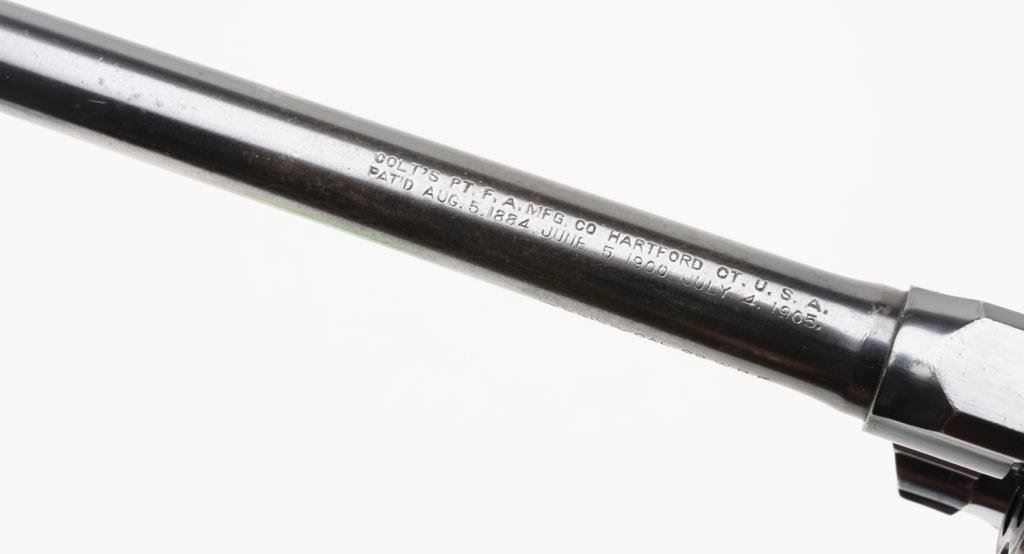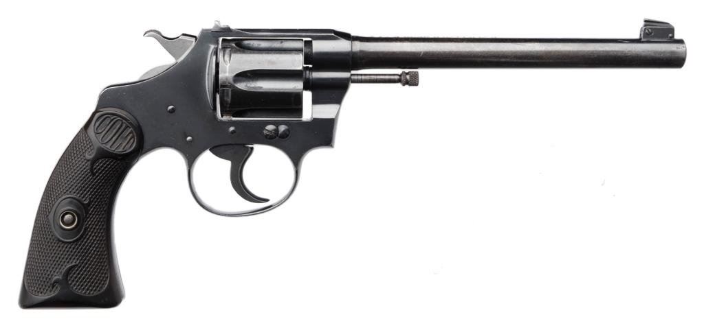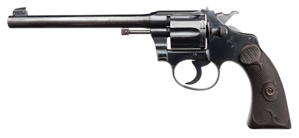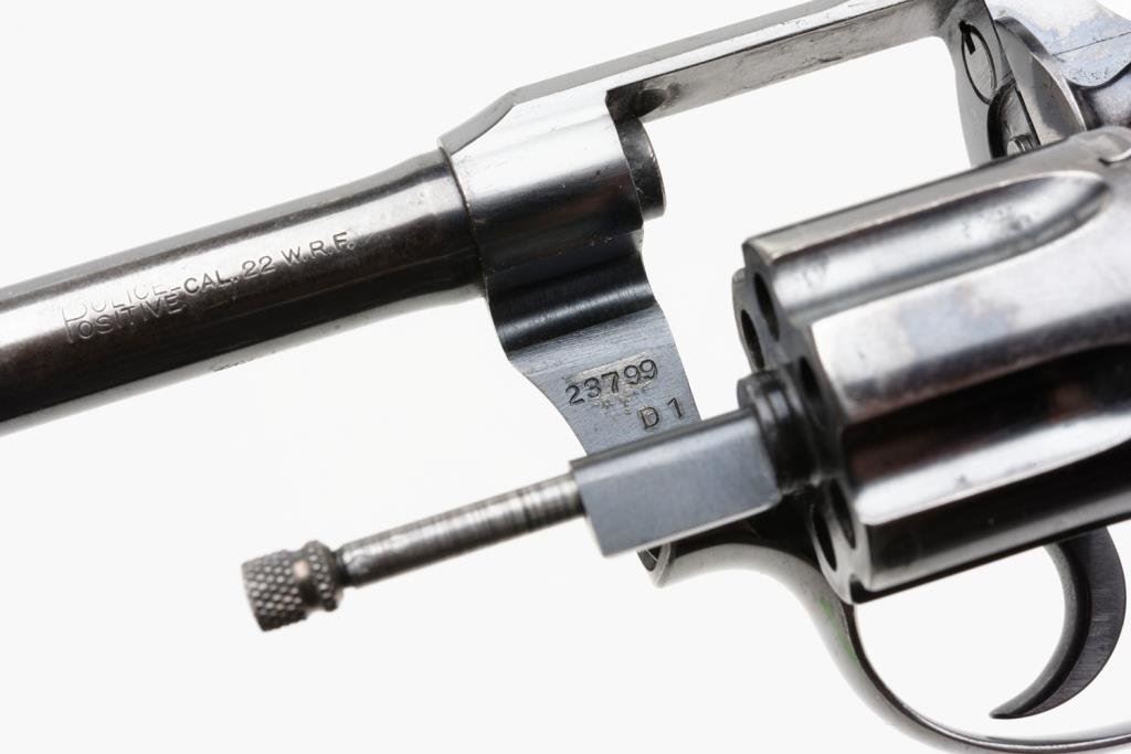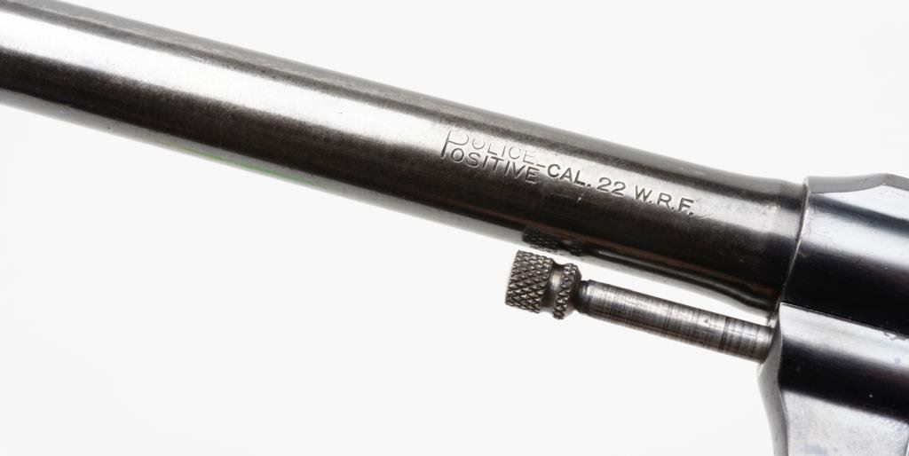 **Colt Police Positive Target Model DA revolver, .22 W.R.F. caliber, 6” barrel, S/N 23799, blued finish, checkered hard rubber grips in overall very good to fine condition showing the majority of its original finish with some holster wear on the barrel, fine bore, crisp action and markings, fine grips. Est.: $700-$900.