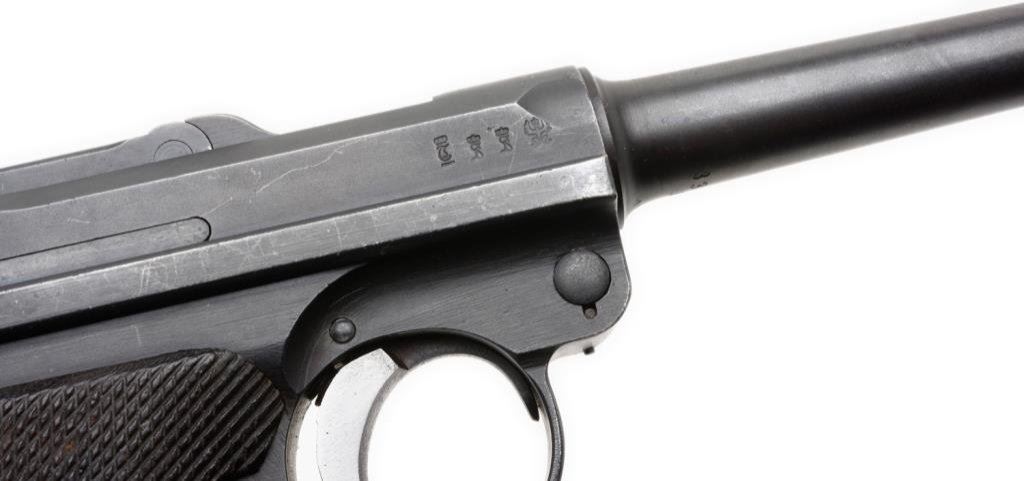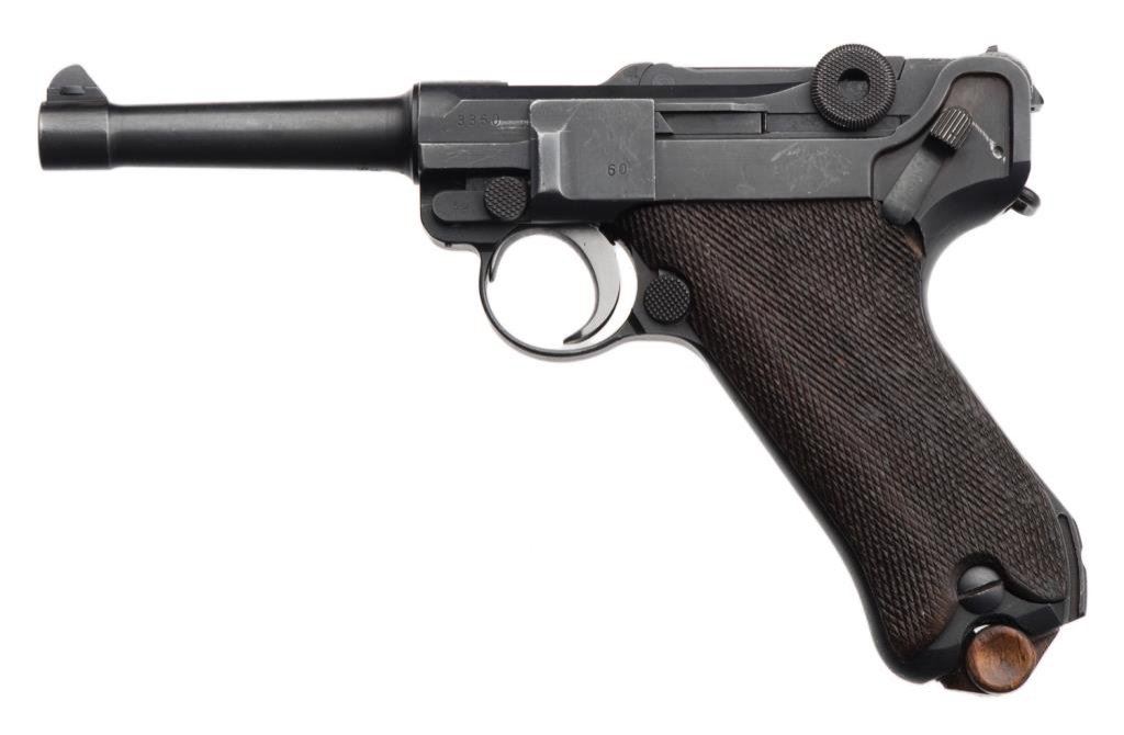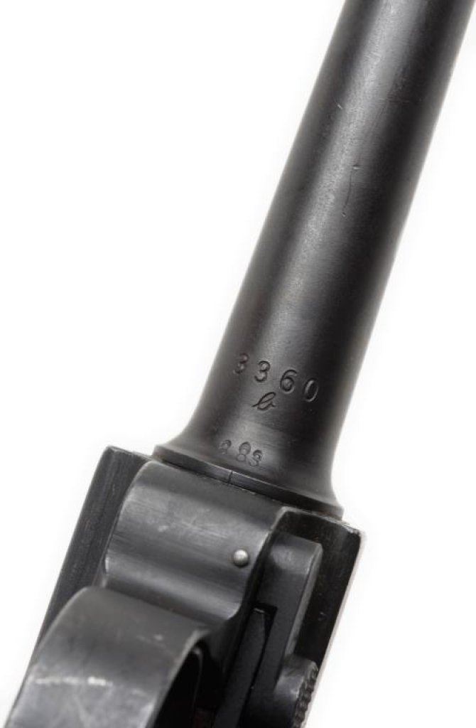 Lot 1806 **DWM P08 Luger semi-automatic pistol, 9mm caliber, 4” barrel, S/N 3360 l,