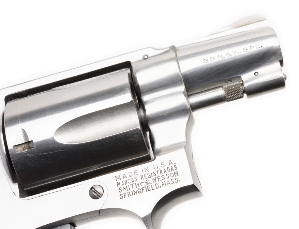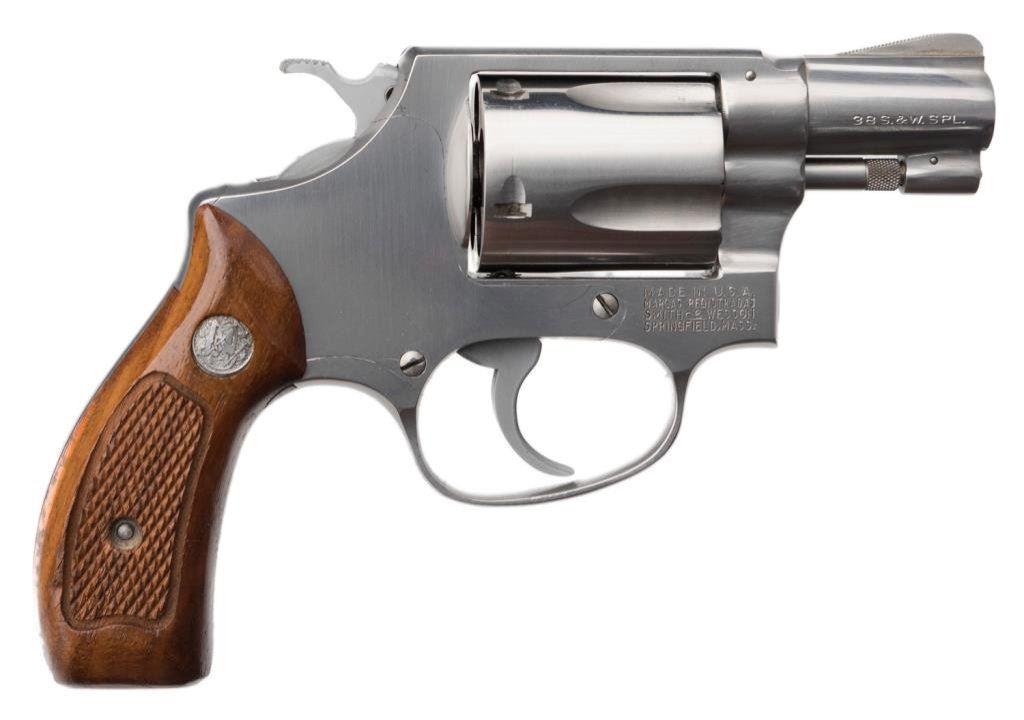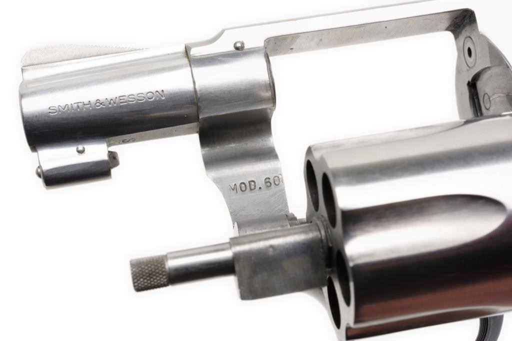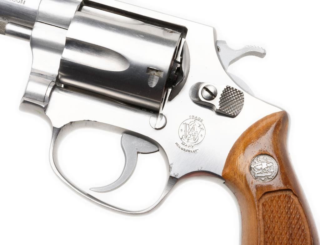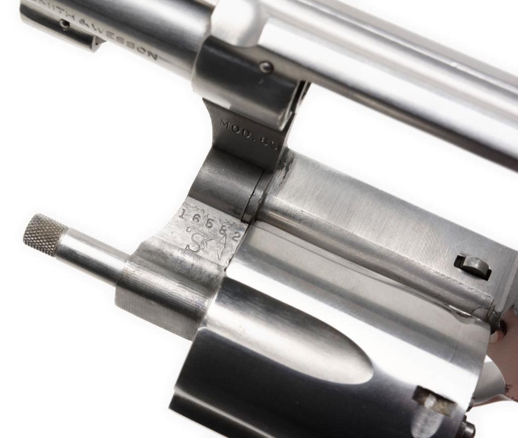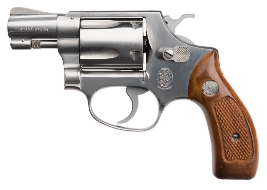 *Smith & Wesson Model 60 DA revolver, .38 Special caliber, 2” barrel, S/N R1094, stainless, checkered wood medallion grips in like new condition. Est.: $400-$800.
