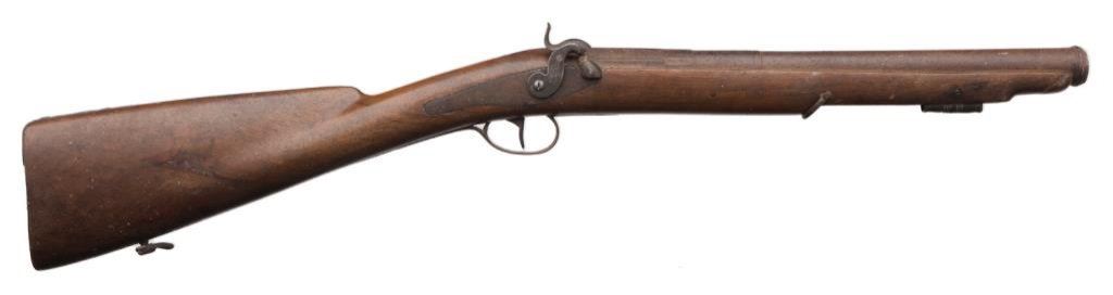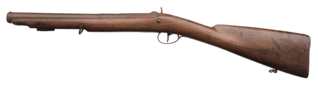 Italian blunderbuss with Lazaring Cominazo marked barrel in percussion with full wood stock, sling swivels and good action; fair only. Est.: $400-$800.