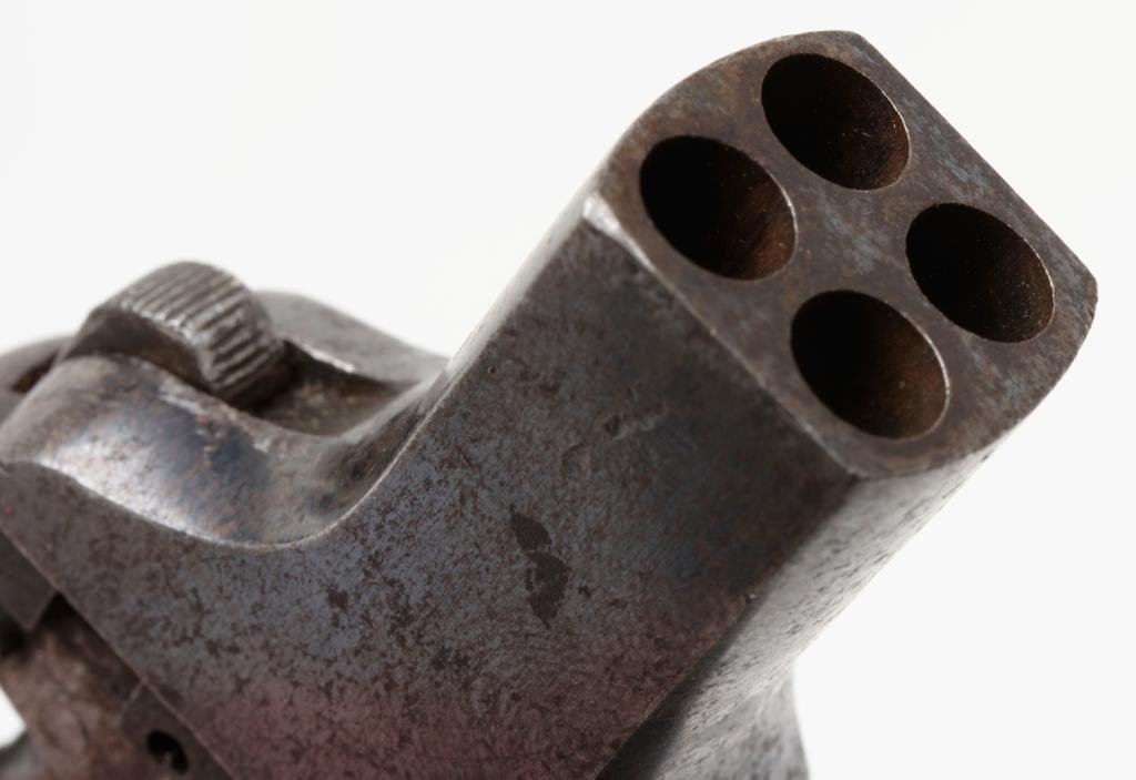 Lot 1850 Shattuck palm pistol, .22 caliber, 4 barrel; blued finish; missing grips a