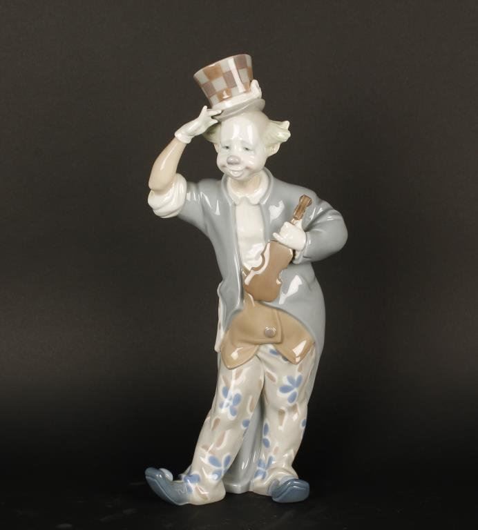 Lladro signed clown with violin; mold marked #11; approximately 13” in height. Est.: $300-$600.