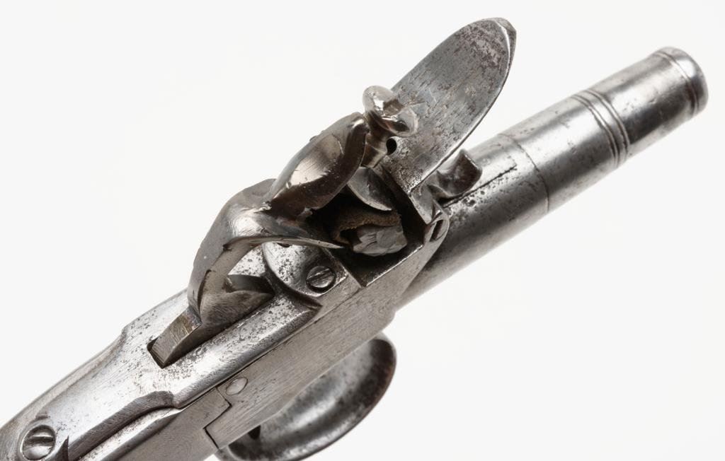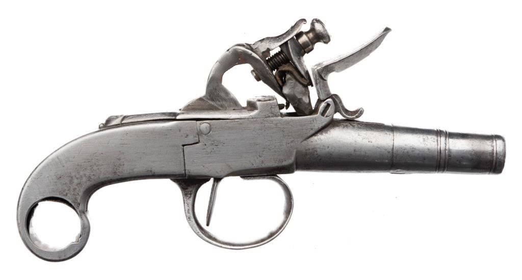 Lot 1858 All metal flintlock pistol ca 18th Century with barrel key in butt; one of