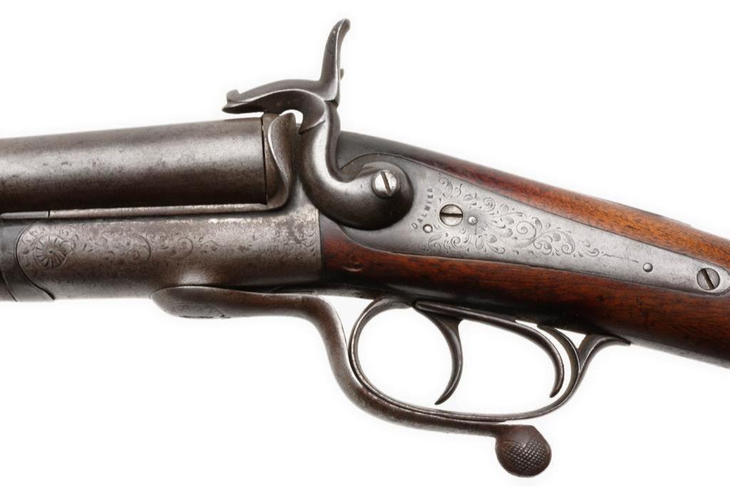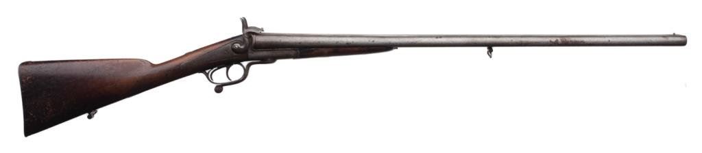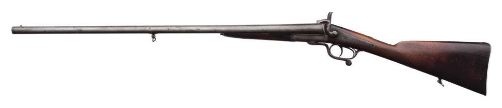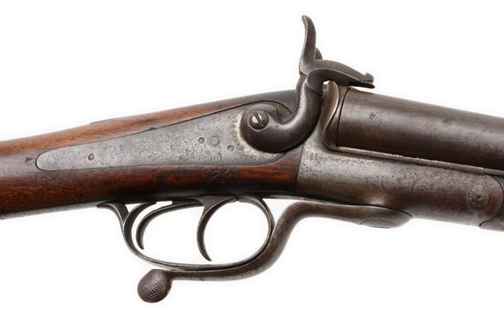 Side-by-Side pinfire shotgun, probably French; good to very good condition overall. Est.: $200-$400.