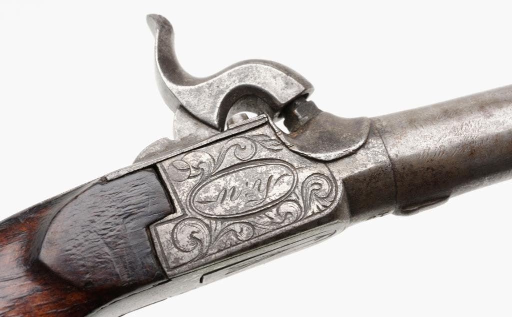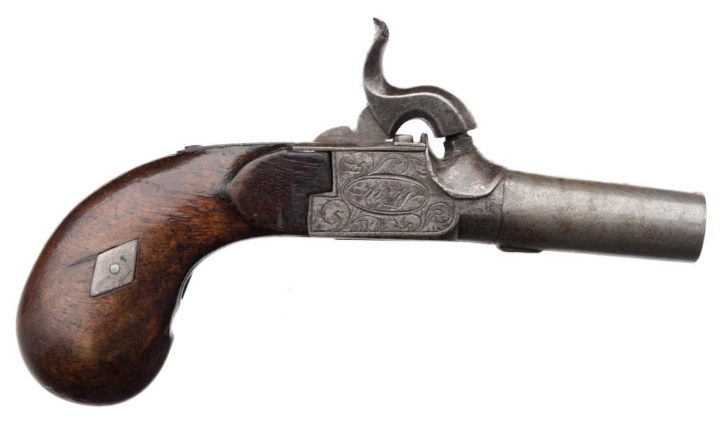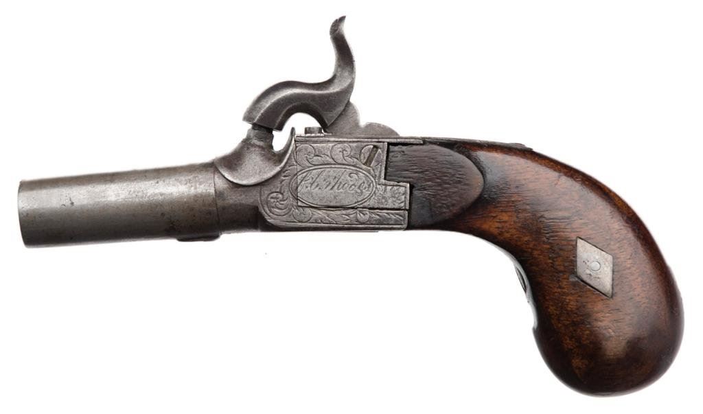 Lot 1863 Percussion muff or belt pistol, .45 caliber, wood grips with N.Y. maker’s