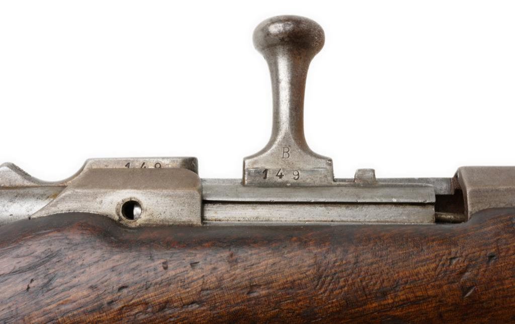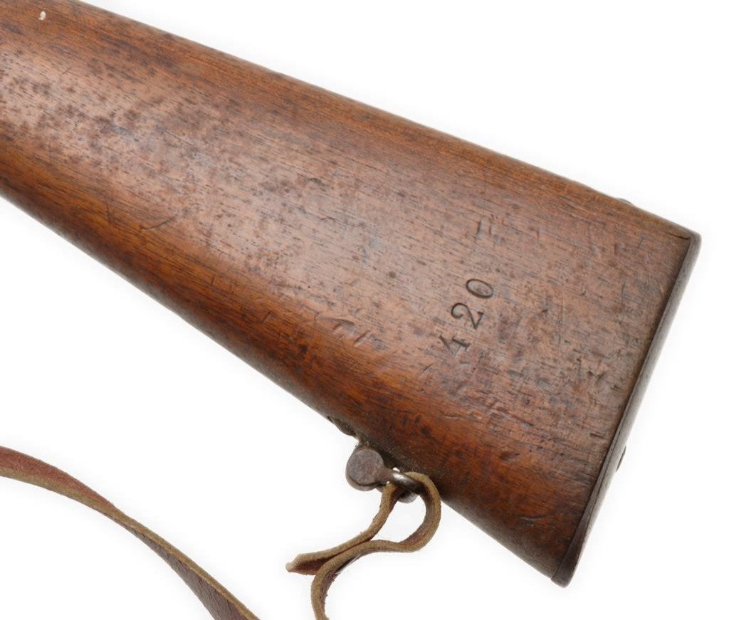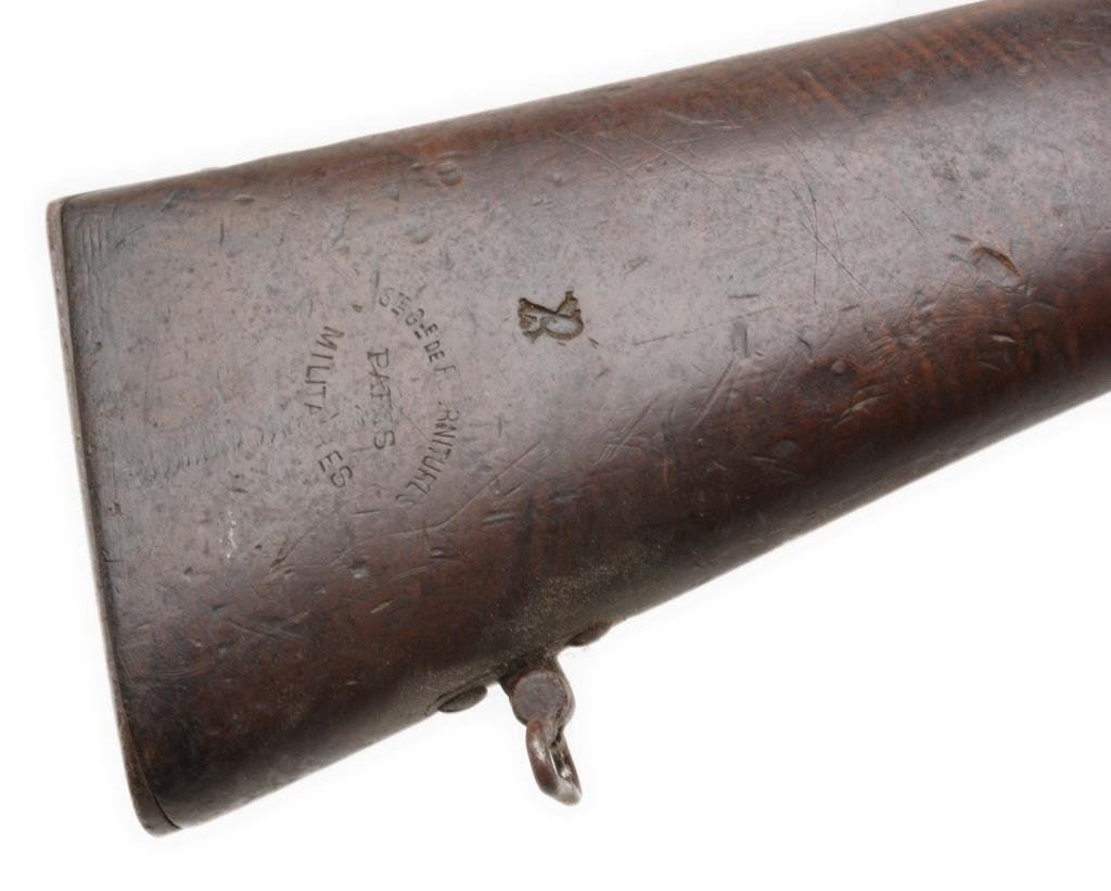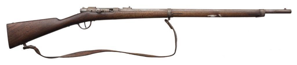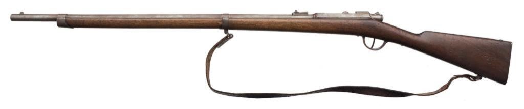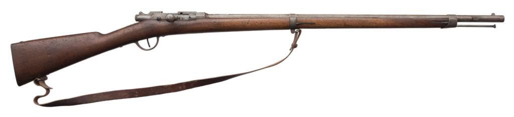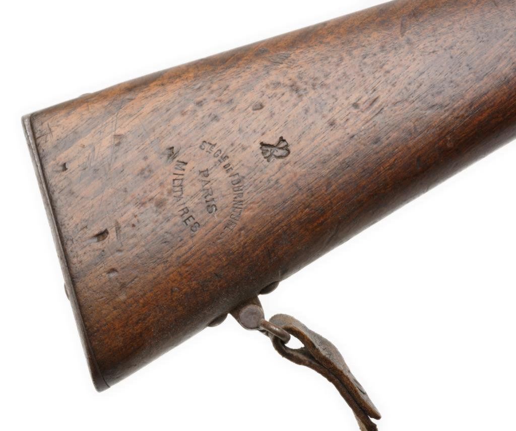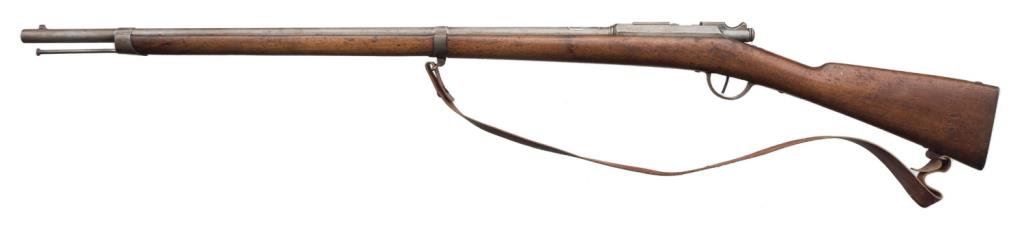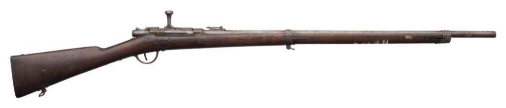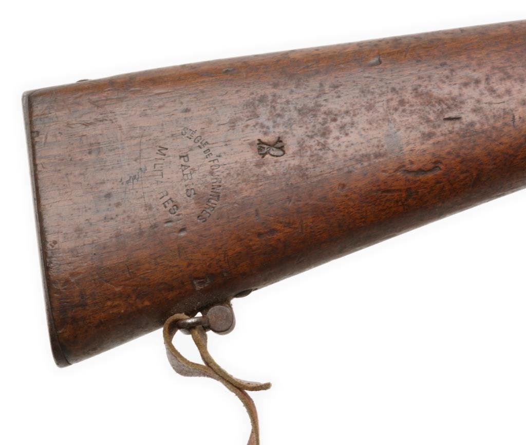 Lot of 3 French Gras antique training rifles, two with slings; all in fair to good condition, S/Ns 420, 149 & 130; brown patinas, wood stocks, bolt actions; non-firing design; each rifle with cartouche on right side of butt stock “Ste Gle DE Founitures/PARIS/MILITAIRES”. Est.: $150-$300.