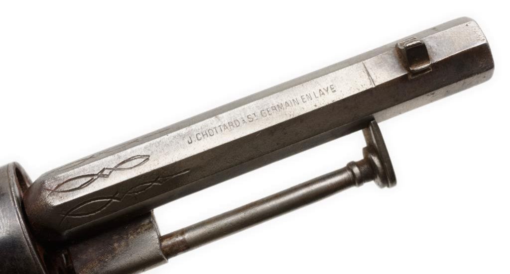 Lot 1874 Pinfire revolver marked “Chottard St. Germain En Laye” on top of barrel, 7