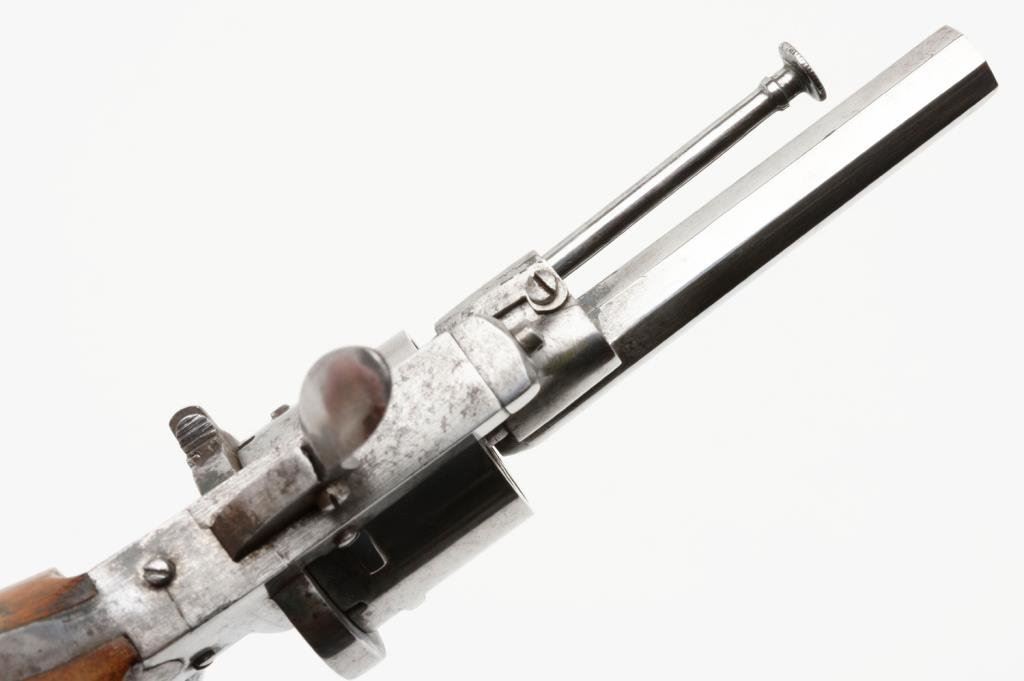 Lot 1880 Pinfire revolver, 7.65mm caliber, 3.25” octagon barrel, bright finish, no