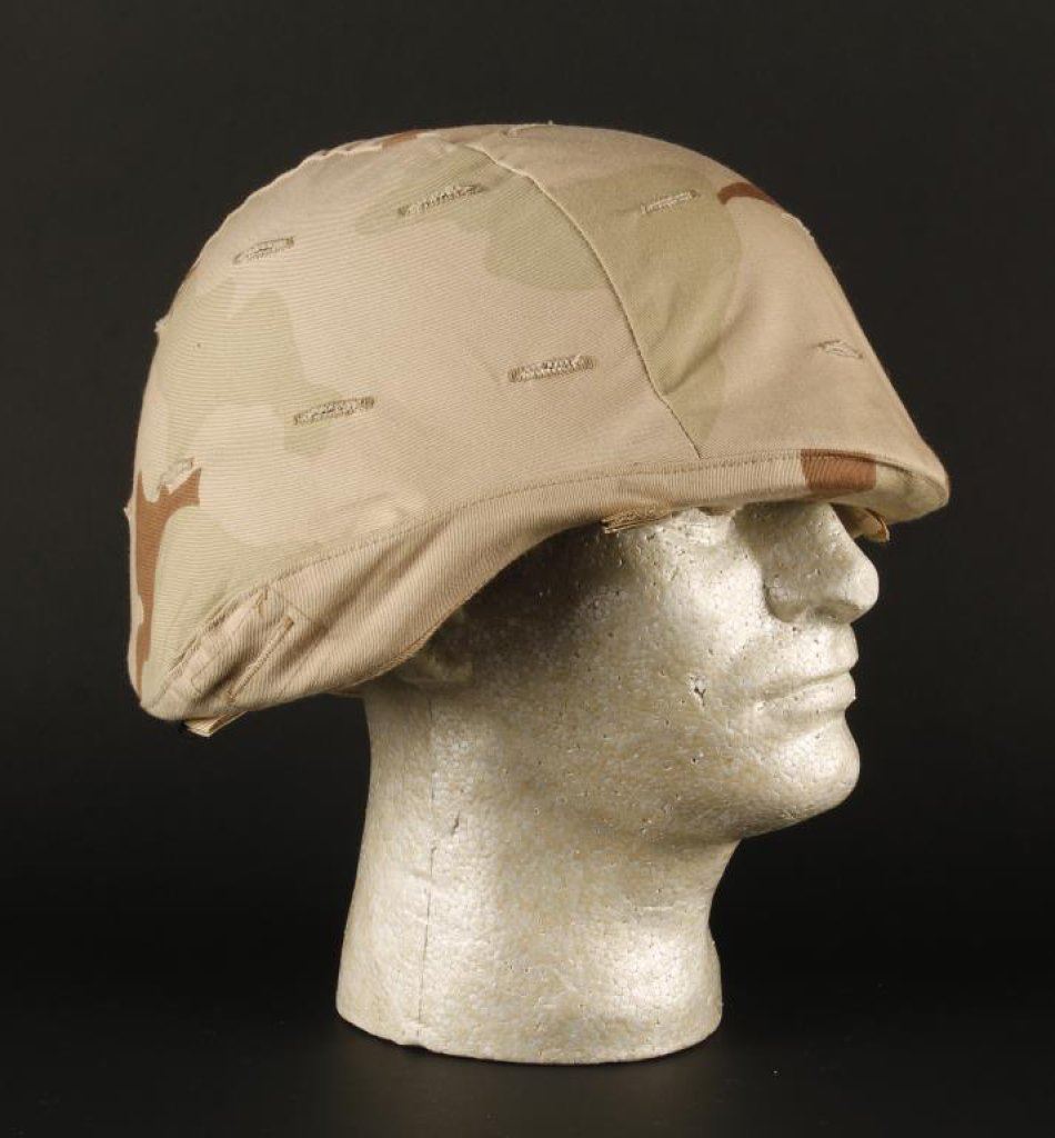 Desert Storm military helmet with liner and desert camouflage cover. Est.: $75-$150.